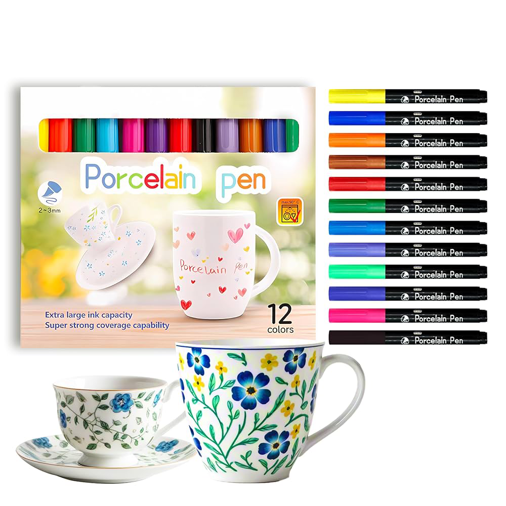 أطلقي العنان لإبداعك مع ألوان كبايات (أقلام بورسلين) 🎨☕️مجموعة احترافية من 12 لون مميز بتصميم عملي وسهل الاستخدام لتزيين السيراميك، الزجاج، والبورسلين بإبداعك الخاص 💫