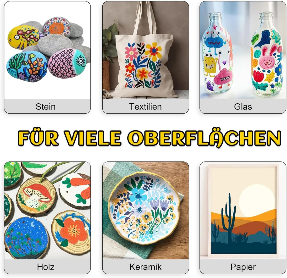 ✨ المميزات:✔️ تحتوي على 12 لون مميز بتغطية قوية ولمسة فنية رائعة✔️ طرف دقيق (2–3 مم) مناسب للرسم على التفاصيل الدقيقة أو المساحات الكبيرة ✍️✔️ حبر ثابت قابل للتثبيت بالحرارة 🔥 للحفاظ على الرسومات لفترة طويلة✔️ مقاومة للبهتان والماء✔️ آمنة وغير سامة — مناسبة للأطفال والكبار 👌✔️ مثالية لتزيين الأكواب، الأطباق، الهدايا اليدوية، والمشاريع الفنية 🎁✔️ سهلة الاستخدام والتنظيف — مثالية للهواة والمحترفين على حد سواء