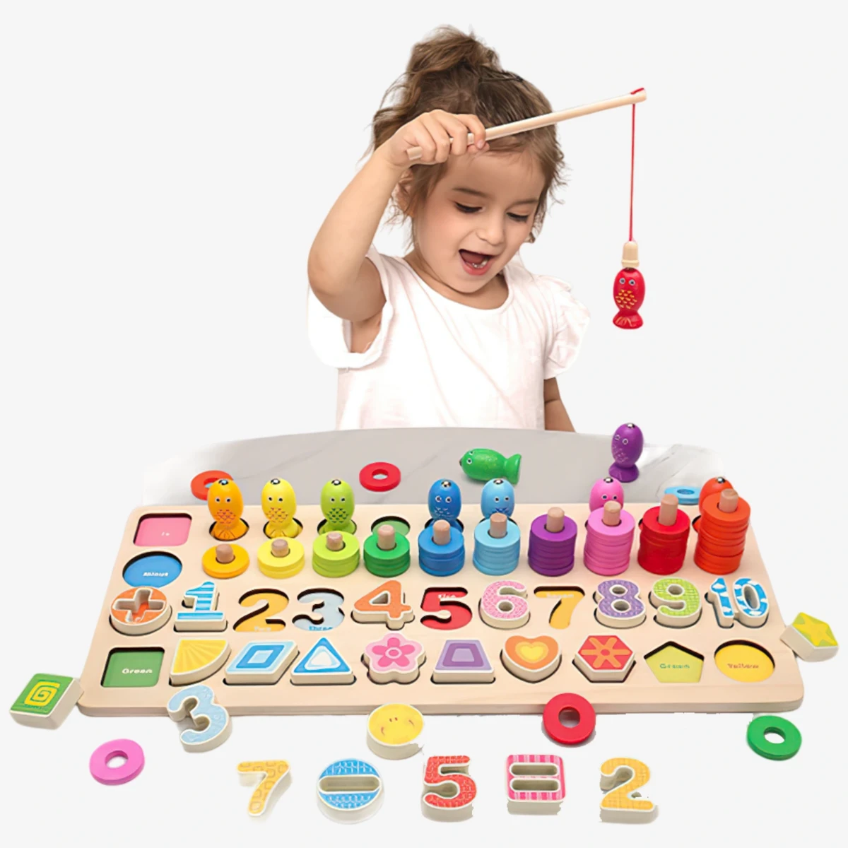 لعبة صيد الأسماك الخشبية الممتعة، تساعد الأطفال على تنمية مهارة التركيز والتنسيق بين العين واليد بطريقة مرحة وآمنة.