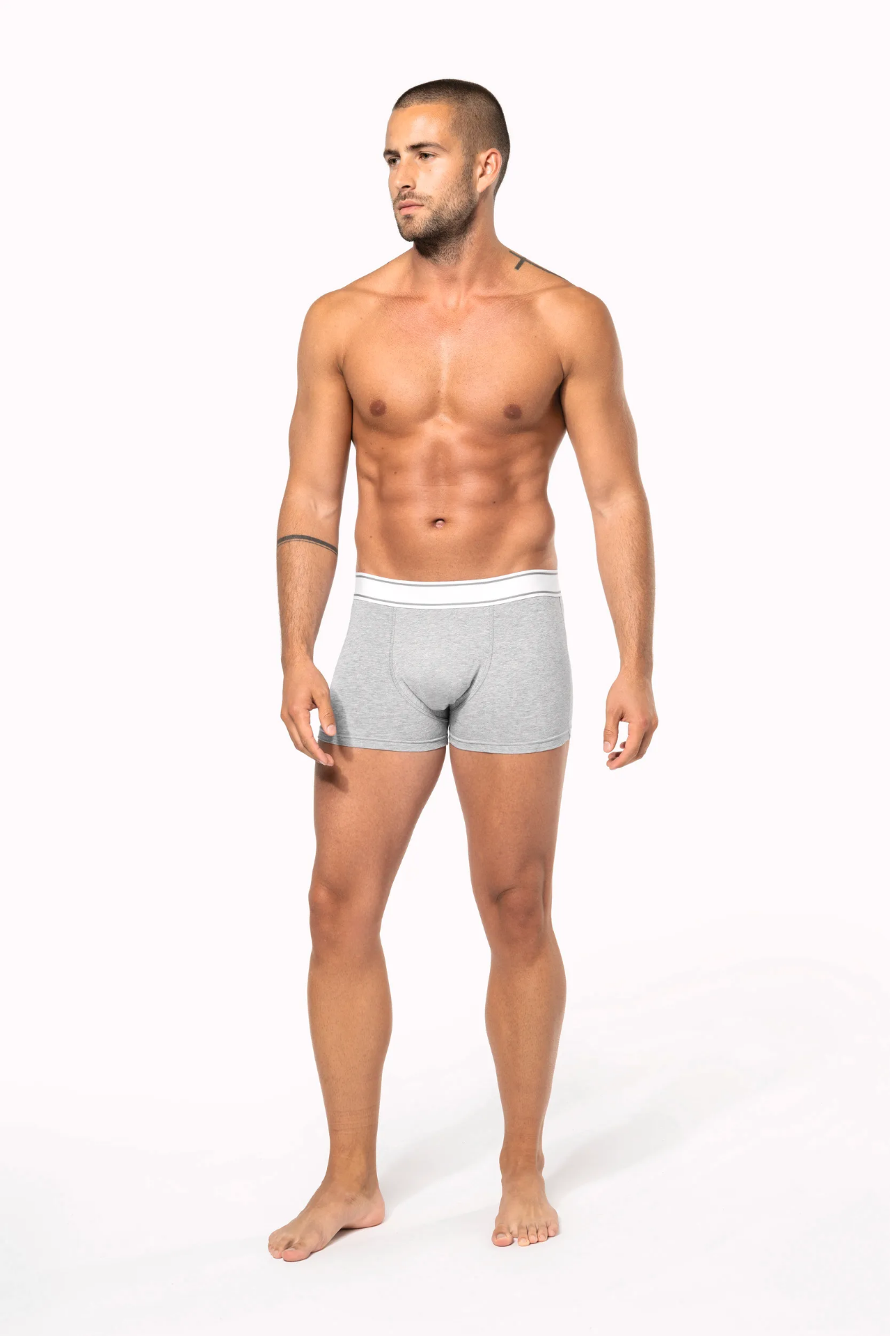 بوكسر رجالي بتصميم عصري باللون الرمادي، مصنوع من قطن ستريتش عالي الجودة لراحة ومرونة طوال اليوم. يوفر دعم مثالي وثبات بدون ضغط، مناسب للاستخدام اليومي والرياضة.