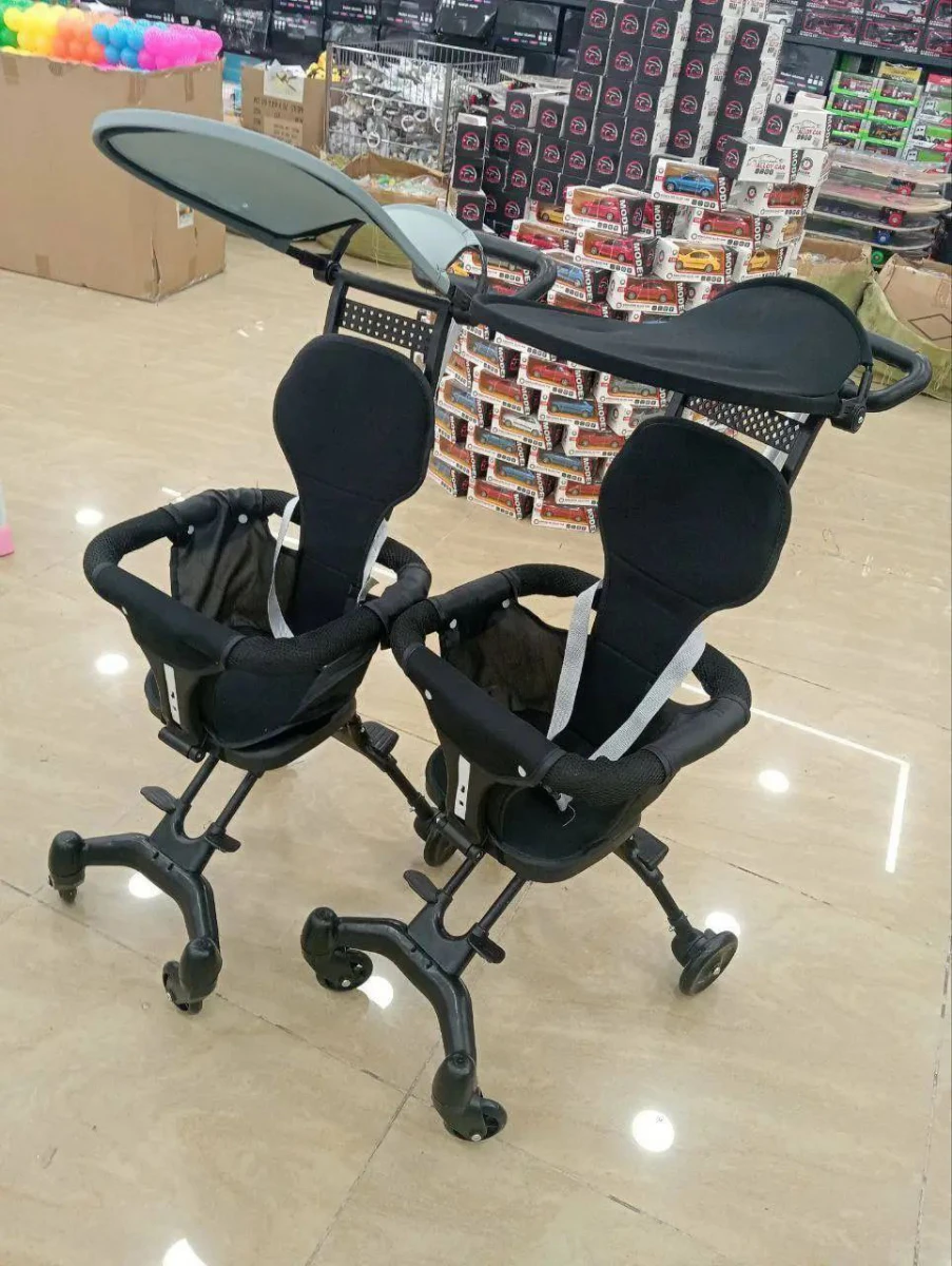 عربية أطفال عملية وخفيفة الوزن، بتتطوى بيد واحدة وسهلة الحمل في السفر أو الطيارة، تجمع بين الراحة والأمان بشكل عصري وأنيق.