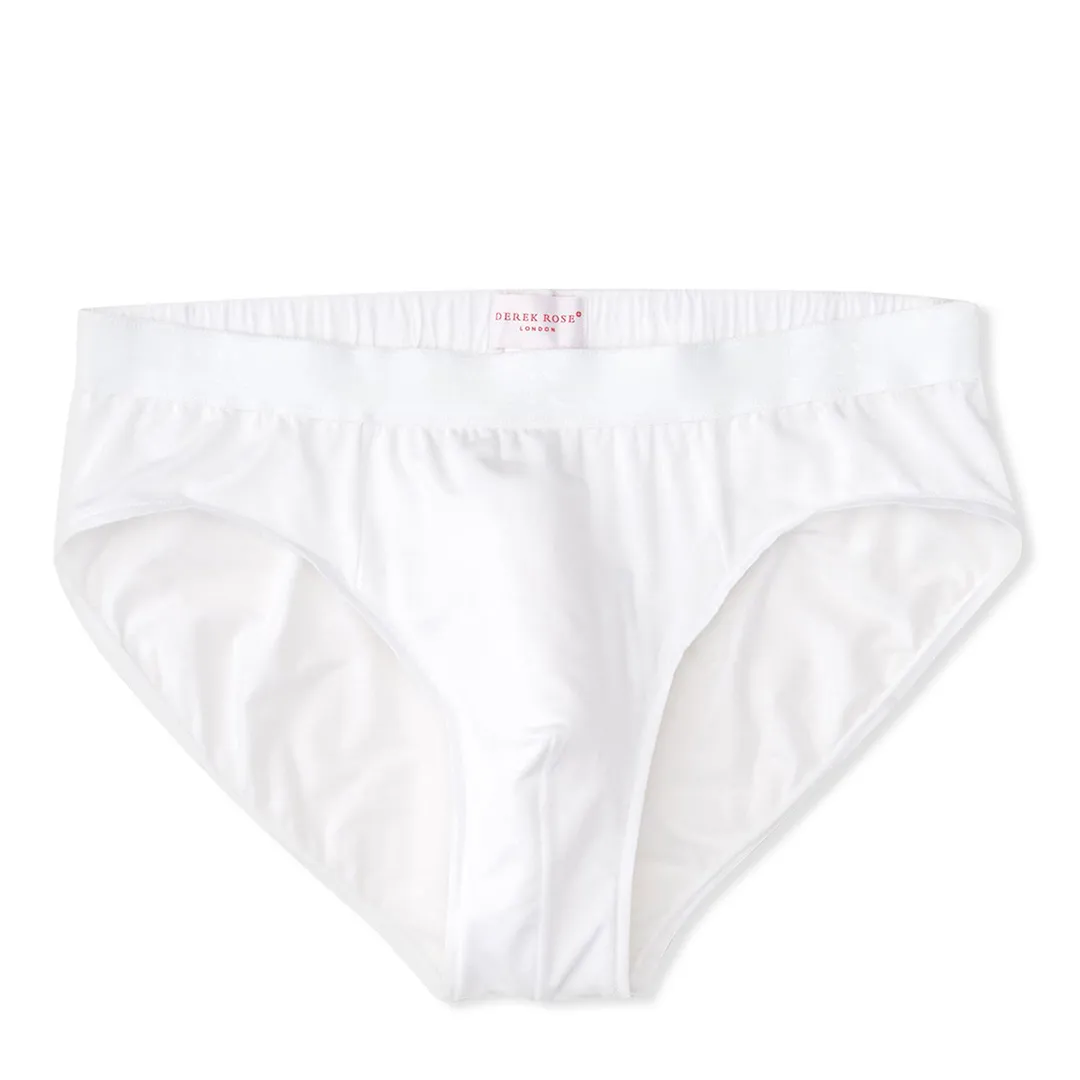 سليب رجالي بتصميم كلاسيكي أنيق باللون الأبيض، مصنوع من قطن ناعم عالي الجودة يوفر راحة مثالية طوال اليوم. خفيف على البشرة مع مرونة عالية وخصر مطاطي مريح لثبات بدون ضغط.
