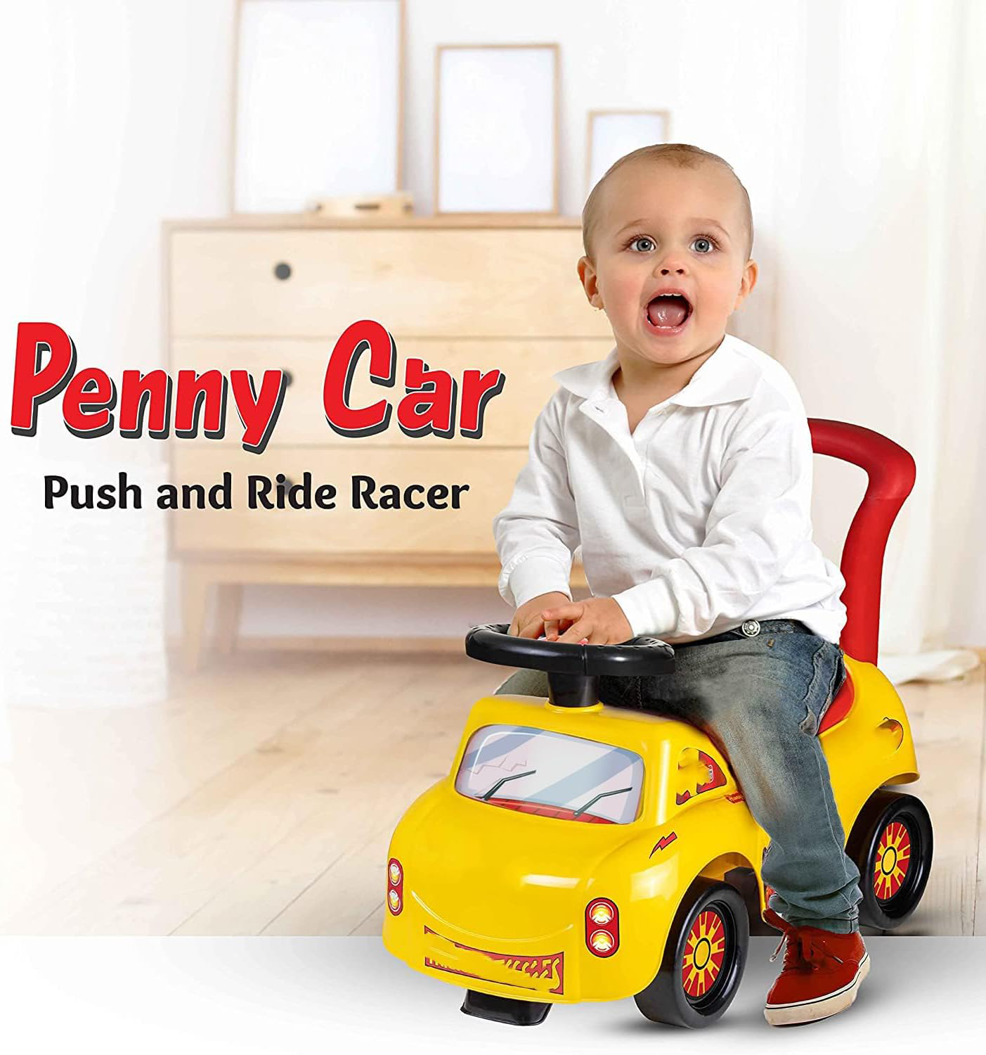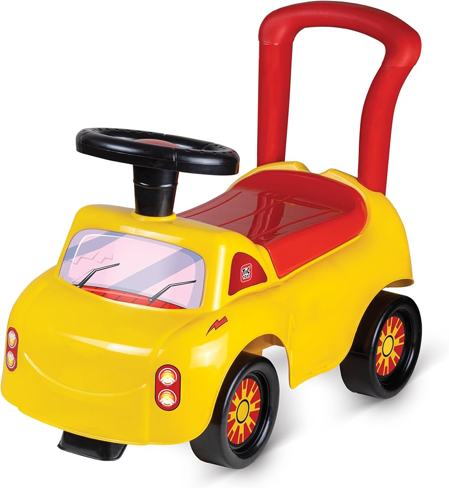 سيارة دفع وركوب آمنة وممتعة من Tik Toys باللون الأصفر الزاهي. مناسبة تماماً للأطفال من عمر سنة إلى 3 سنوات. مزودة بمقعد مريح، مقبض خلفي للتحكم الأبوي، ومكان سري للتخزين أسفل المقعد. مثالية لمساعدة الطفل على المشي والدفع