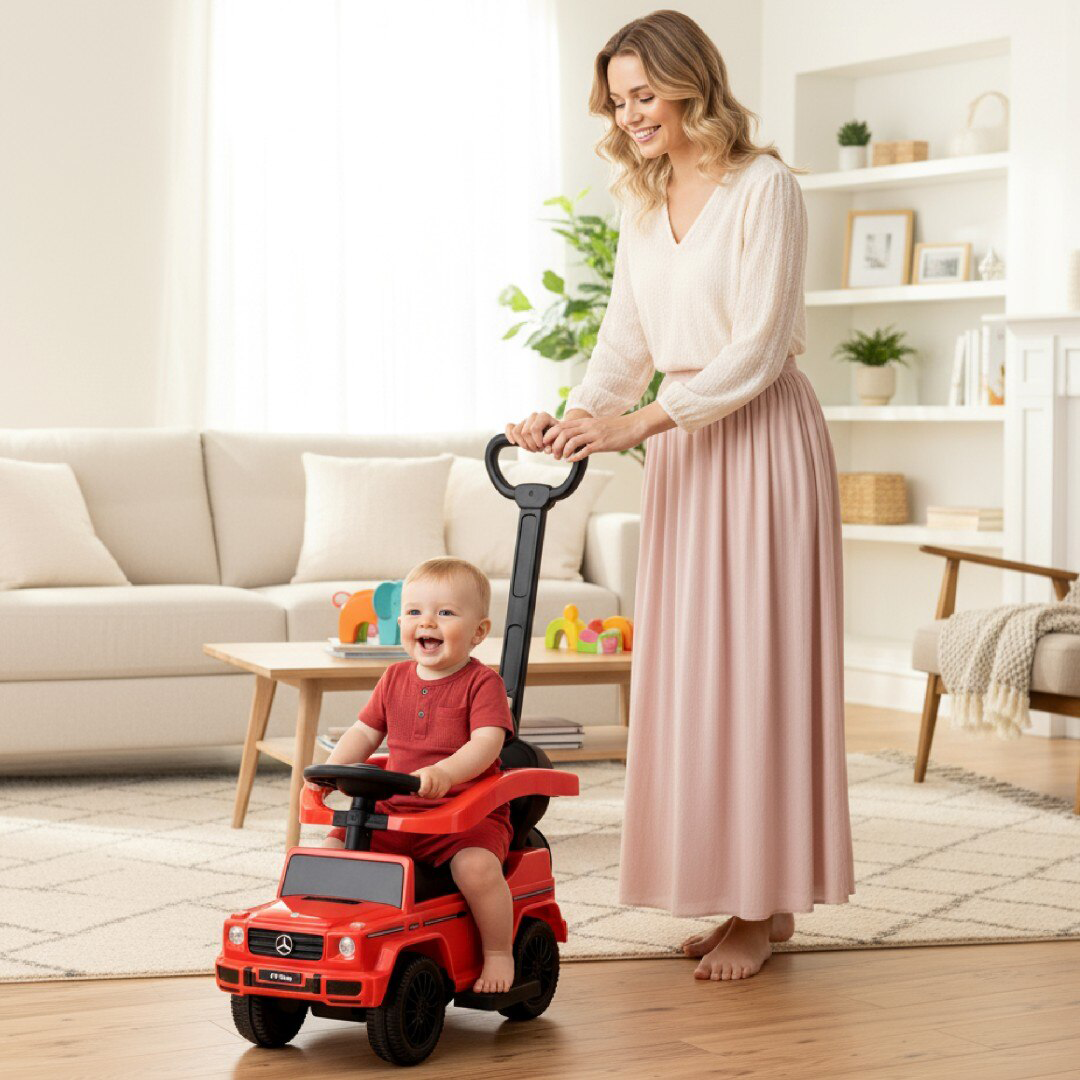 سيارة ركوب متعددة الوظائف (عربة دفع 2 في 1) من Tik Toys. تُستخدم كعربة للوالدين للأعمار الصغيرة، ثم تتحول إلى سيارة ركوب ذاتية للطفل. مناسبة للأطفال من عمر سنة حتى 7 سنوات. تصميم متين وآمن باللون الأزرق الجذاب.