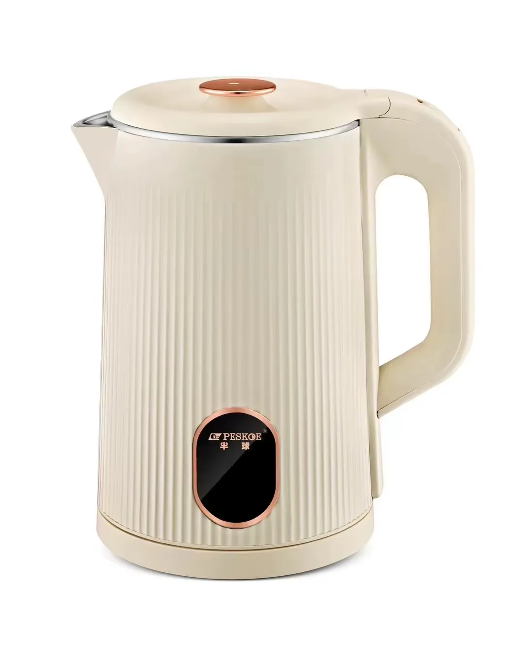 غلاية ماء بسعة 2.5 لتر ضخمة، مثالية للعائلات والمكاتب. تتميز بتصميم أبيض مُضلّع عصري يضيف لمسة من الأناقة النظيفة لمطبخك. غليان سريع وأمان مزدوج بفضل نظام الإغلاق التلقائي.