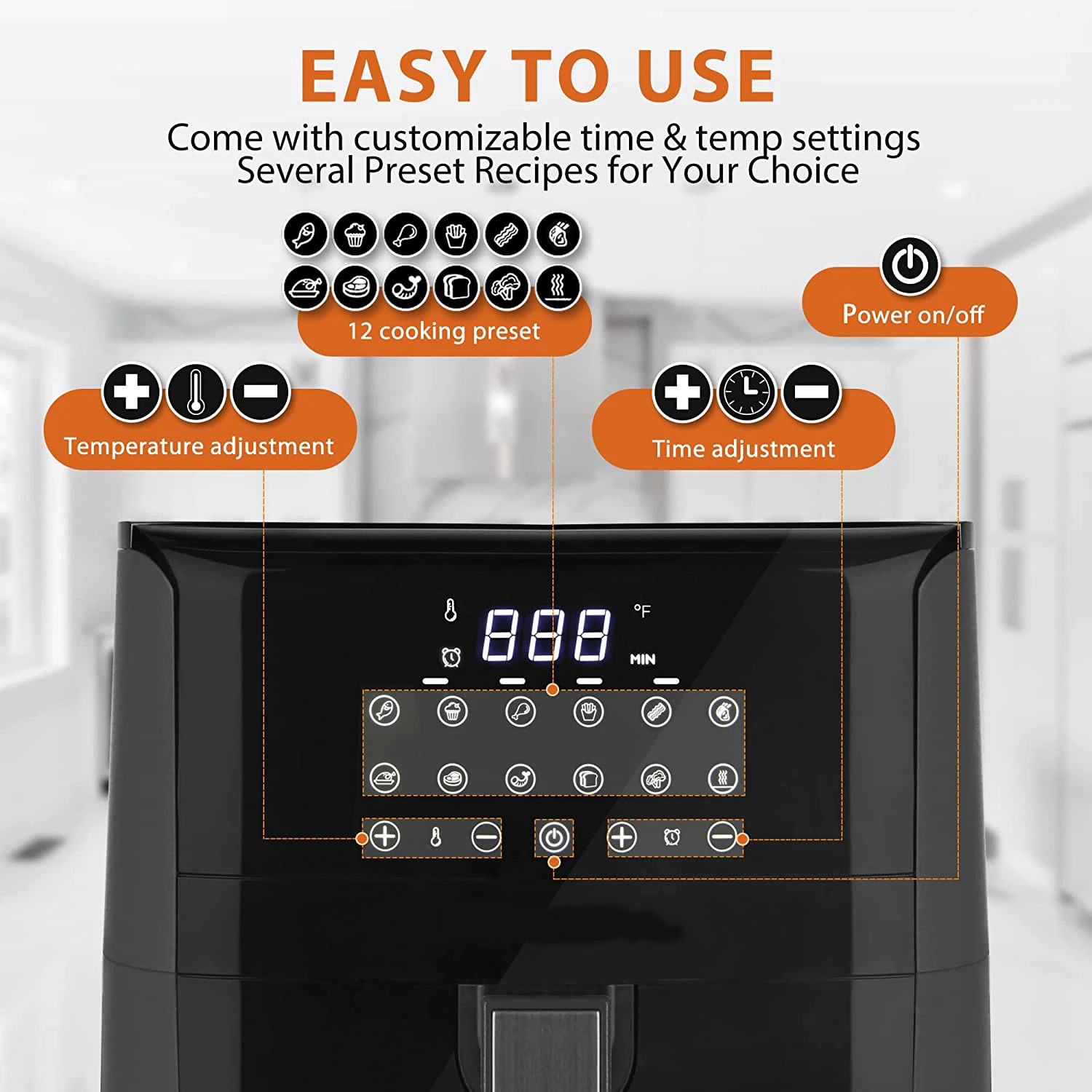 قلاية هوائية ديجيتال بسعة 7 لتر، مثالية للاستخدام اليومي. قوة 1700 واط لأداء فعال وسريع. تتميز بتحكم رقمي سهل وبرامج طهي مسبقة. استمتع بوجبات مقرمشة ولذيذة مع تقليل استهلاك الدهون بشكل كبير.