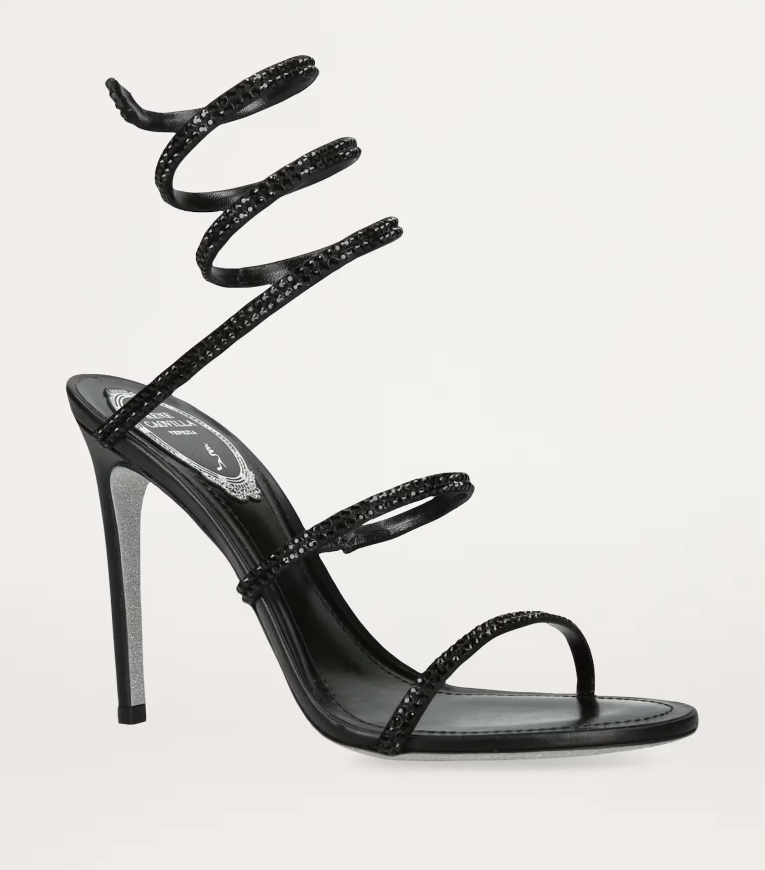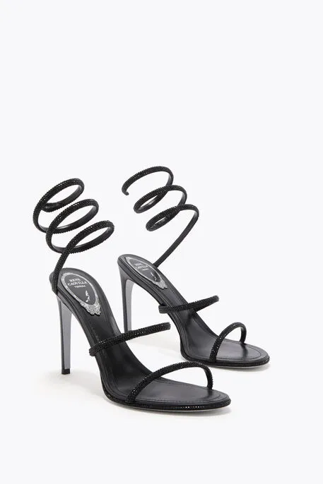 صندل "سيرين" اللولبي المرصع بالكريستال - أسود ملكي.