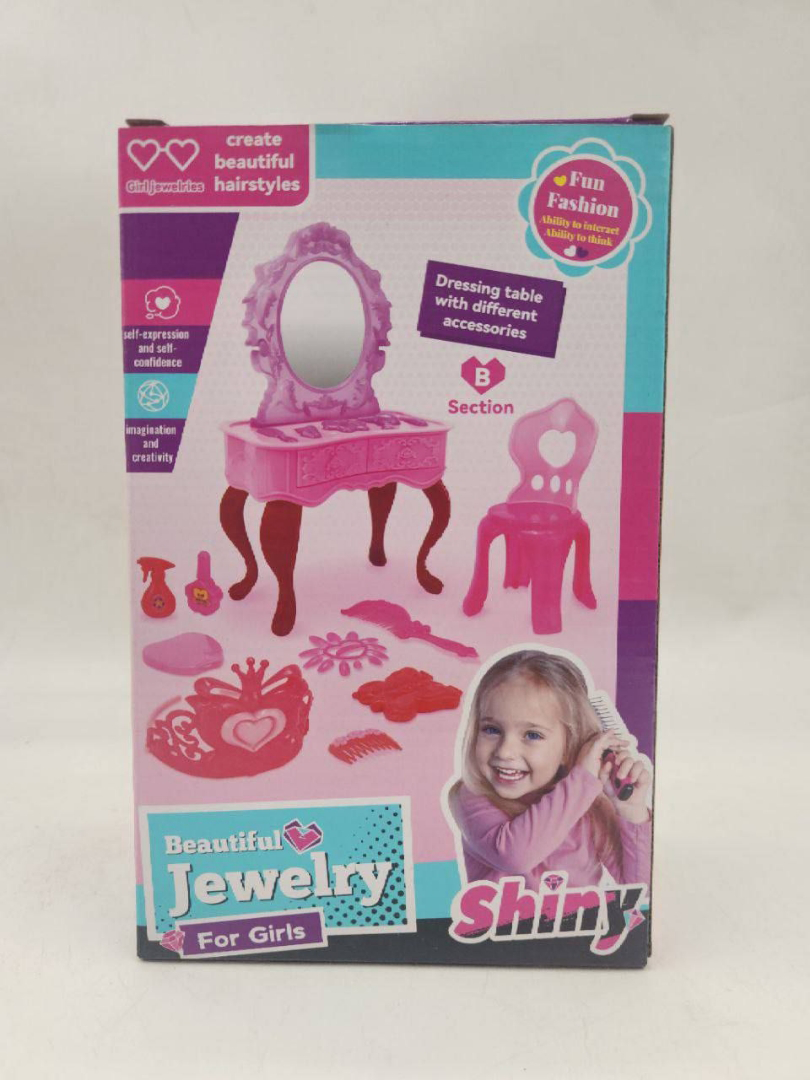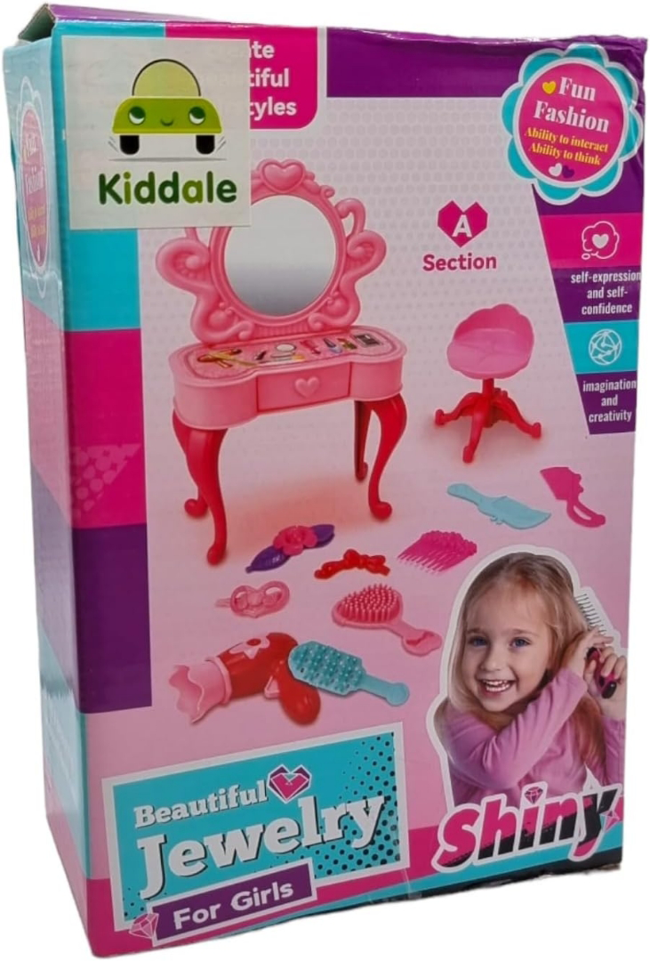 اجعلي وقت اللعب أكثر متعة مع مجموعة مكياج 2 في 1 للبنات التي تضم طاولة زينة أنيقة وكرسي مريح. تحتوي على أدوات تجميل آمنة وألوان مبهجة تساعد الطفلة على تنمية خيالها والتعبير عن شخصيتها بطريقة آمنة ومسلية. مثالية كهدية رائعة للبنات الصغيرات.