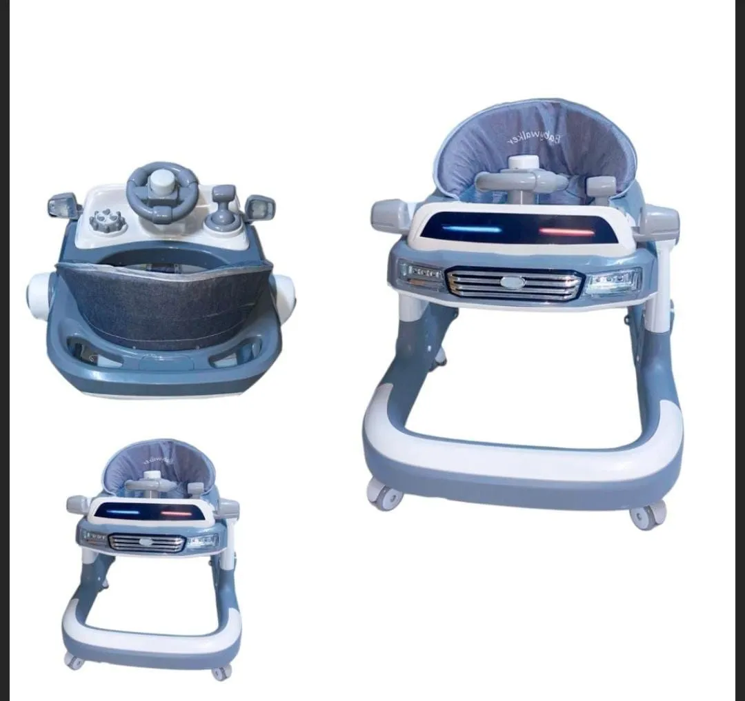 التصميم: تتميز بتصميم مبتكر على شكل سيارة مع أضواء وموسيقى لإبقاء الطفل مستمتعًا. الوظائف: غالبًا ما تكون متعددة الوظائف، حيث يمكن استخدامها كمشاية، ومركز أنشطة، وعربة ركوب (4 في 1). تعديل الارتفاع: تحتوي على مستويات ارتفاع قابلة للتعديل لتناسب مراحل نمو الطفل المختلفة. السلامة والراحة: مصممة بقاعدة واسعة وهيكل مثلثي وعجلات مغطاة بالمطاط وكتل مضادة للانزلاق لضمان الأمان والثبات. المقعد مبطن وقابل للإزالة والغسل. التطوير: تساعد على تقوية عضلات الساق وتحسين التوازن وتشجع على اللعب التخيلي.