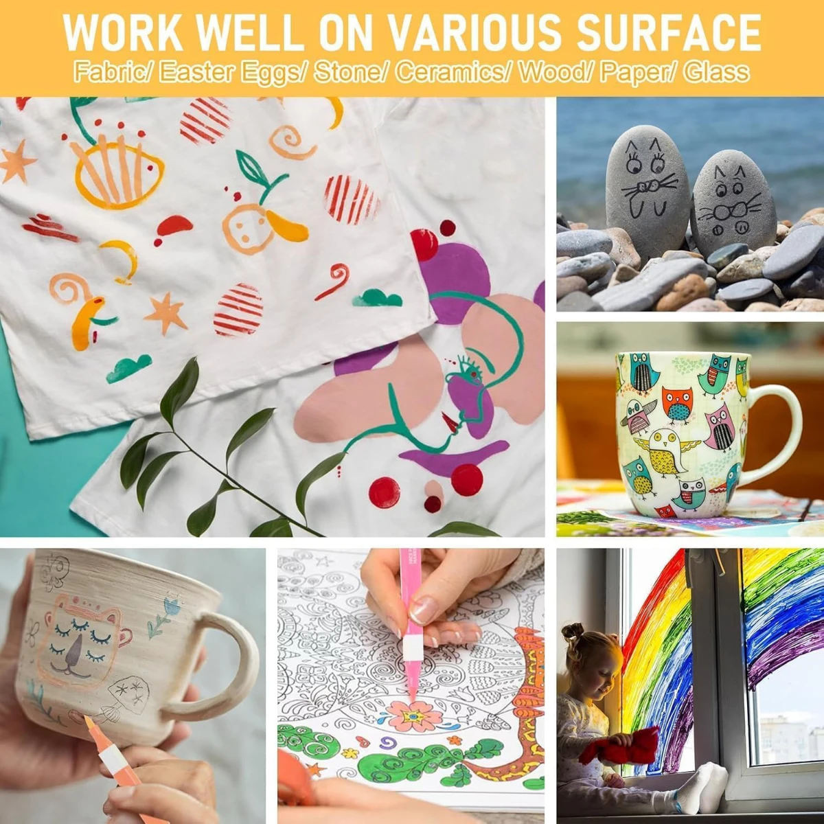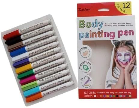 ✨ المميزات:✔️ 12 لون متنوع لتصميمات فنية مبهجة✔️ مناسب للرسم على الوجه، القماش، الخشب، الزجاج والمزيد✔️ تصميم مريح وسهل الاستخدام للأطفال والكبار 👩🎨✔️ قابلة للغسل بالماء والصابون بسهولة 💧✔️ آمنة تمامًا على البشرة وغير سامة✔️ ألوان ثابتة وجودة عالية تدوم طويلًا✔️ مثالية للأنشطة الفنية، الحفلات، والاحتفالات 🎉