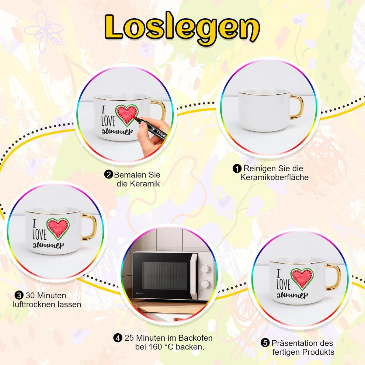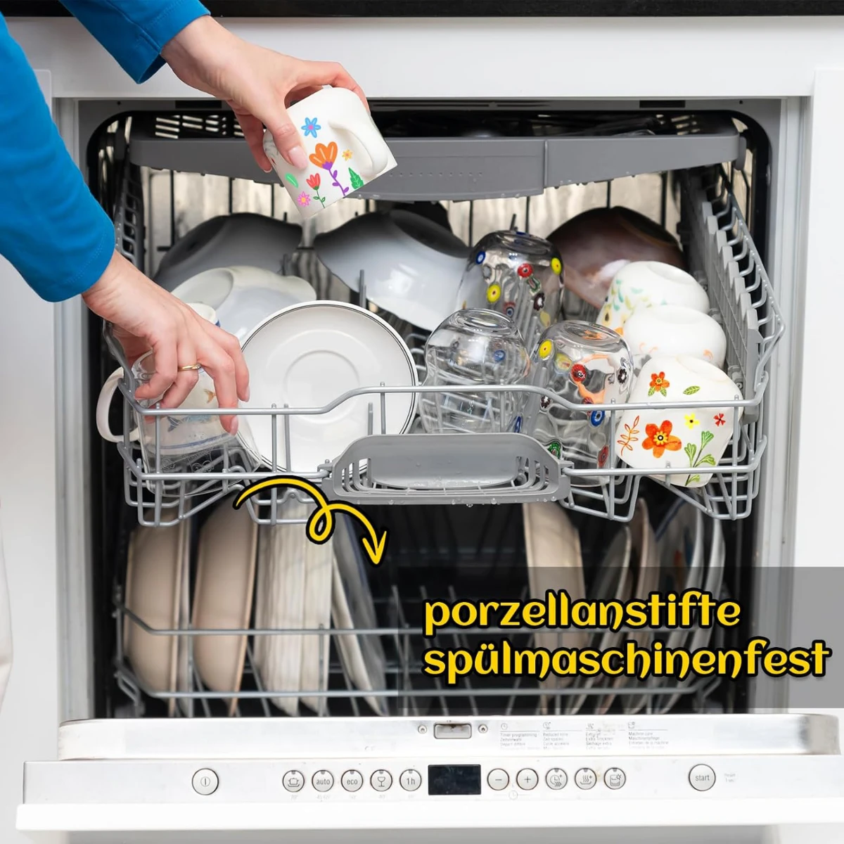 آمنة للاستخدام في غسالة الأطباق، أقلام بورسلين، طلاء بورسلين، آمنة للاستخدام في غسالة الأطباق للرسم على السيراميك والزجاج، أقلام طلاء زجاجي، آمنة للاستخدام في غسالة الأطباق