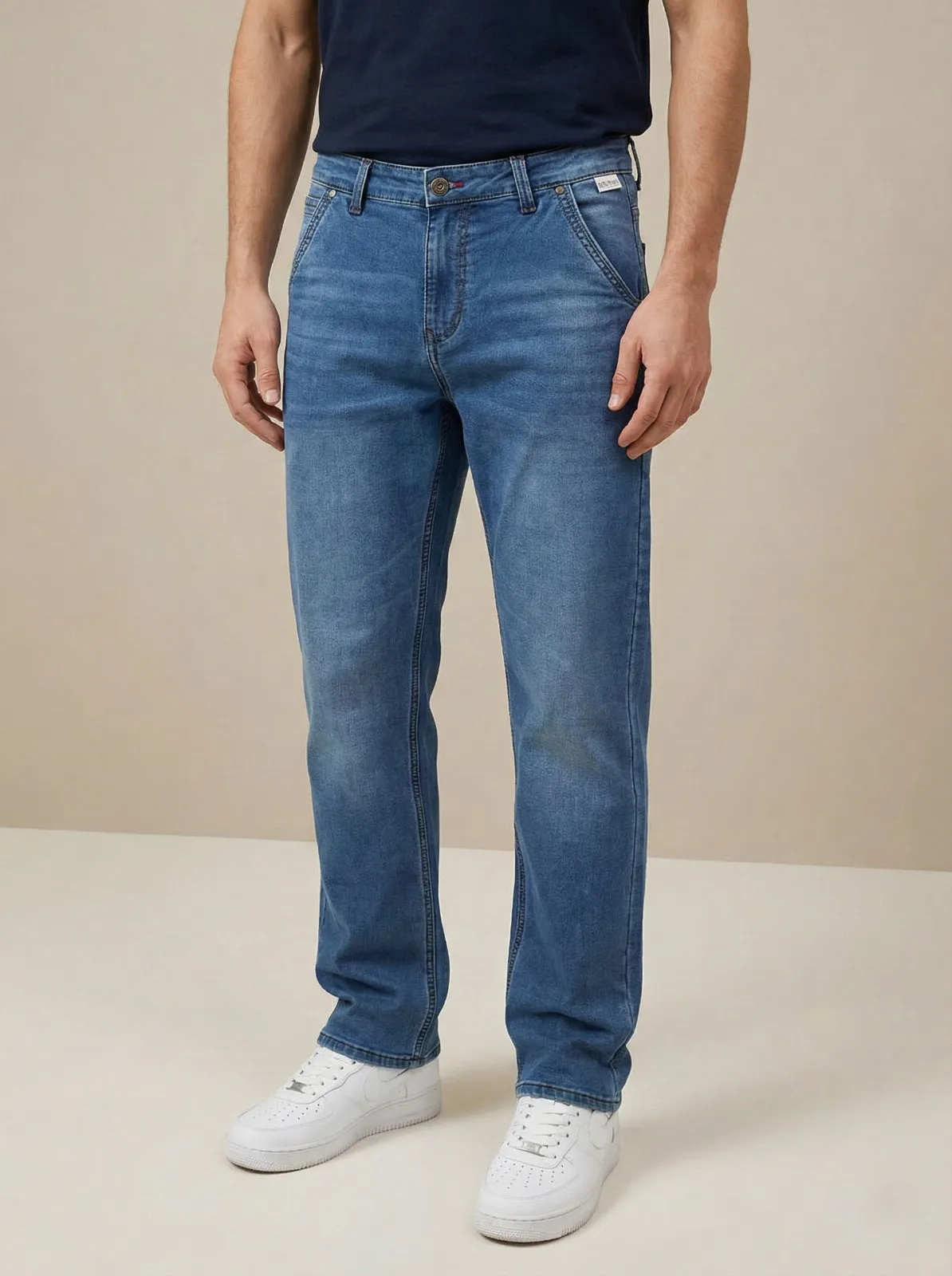 جينز عصري يجمع بين الراحة والأناقة، مصنوع من قماش عالي الجودة بلمسات باهتة خفيفة (Faded) وجيوب جانبية بتصميم كلاسيكي، مثالي للإطلالات اليومية.