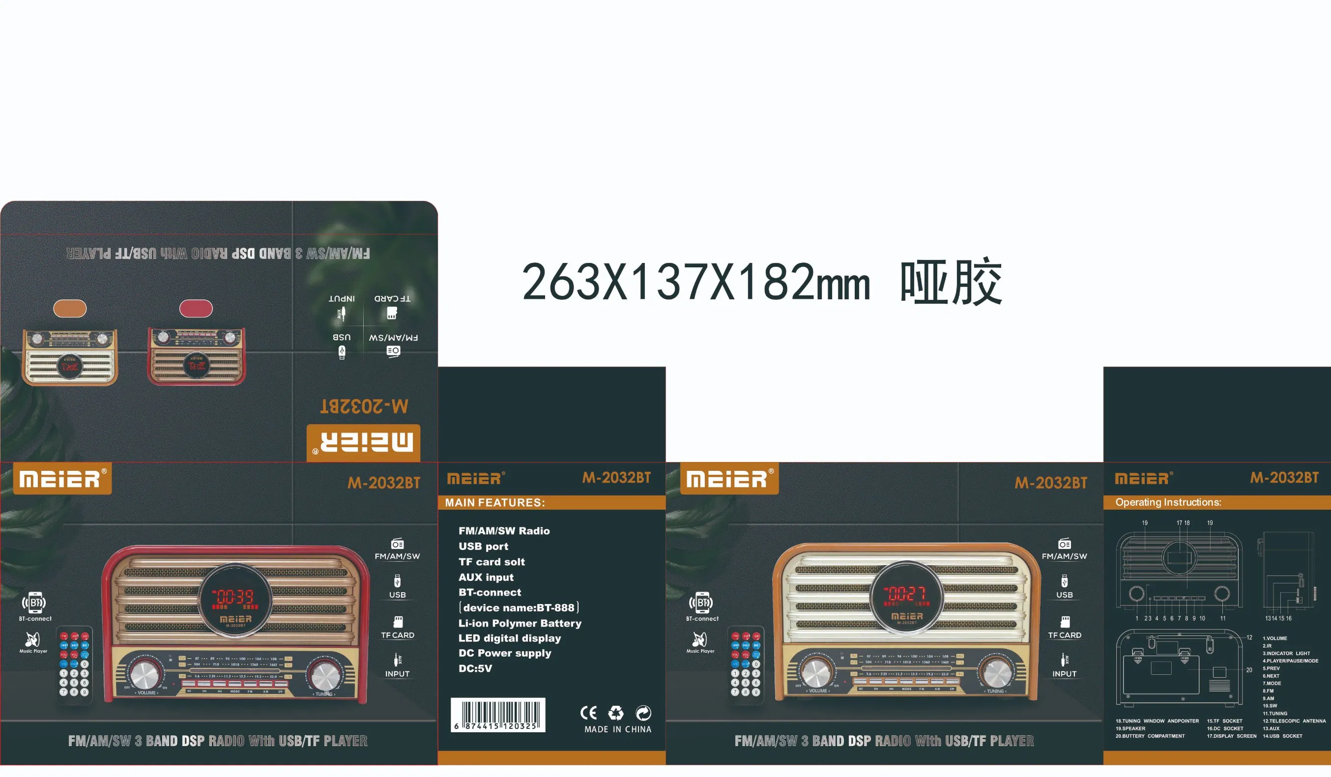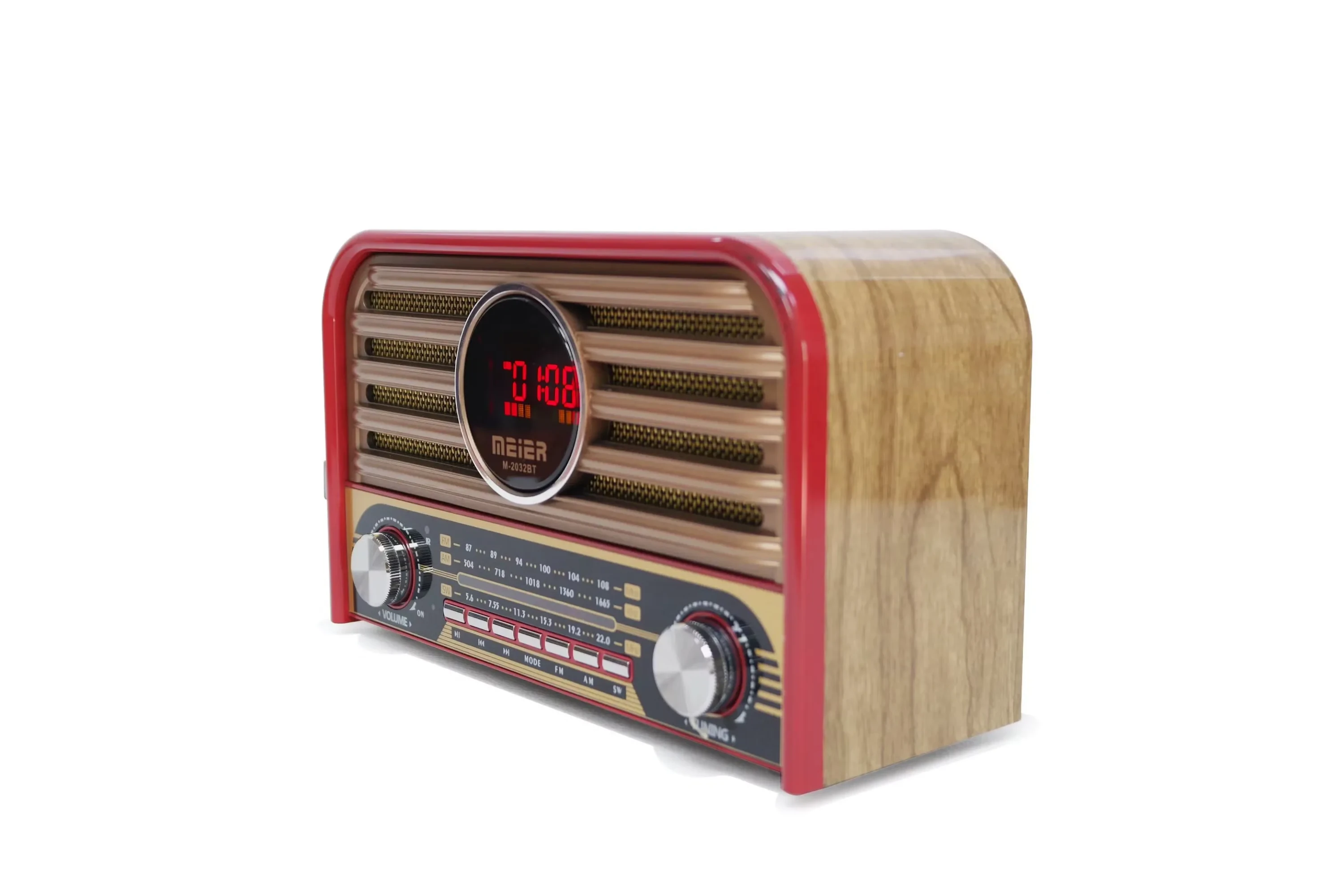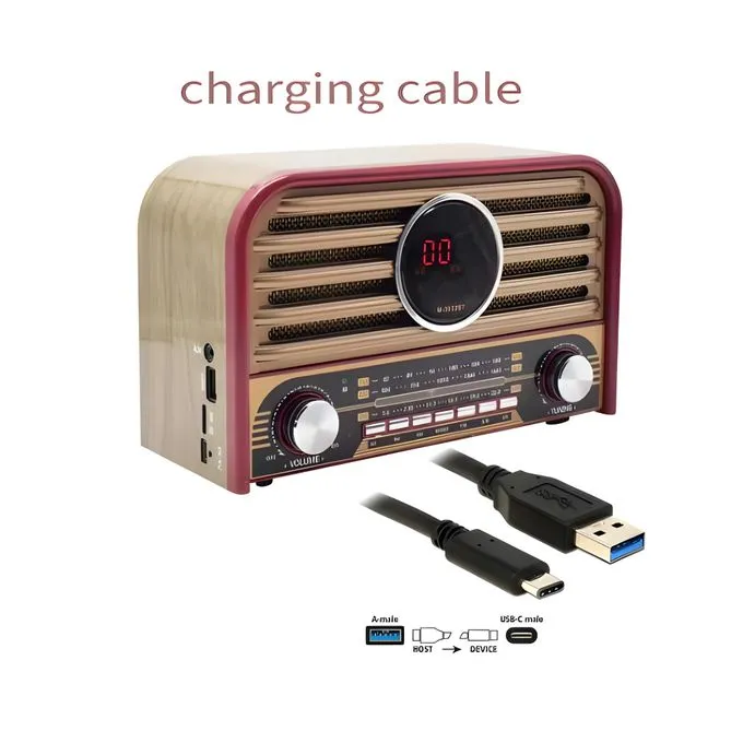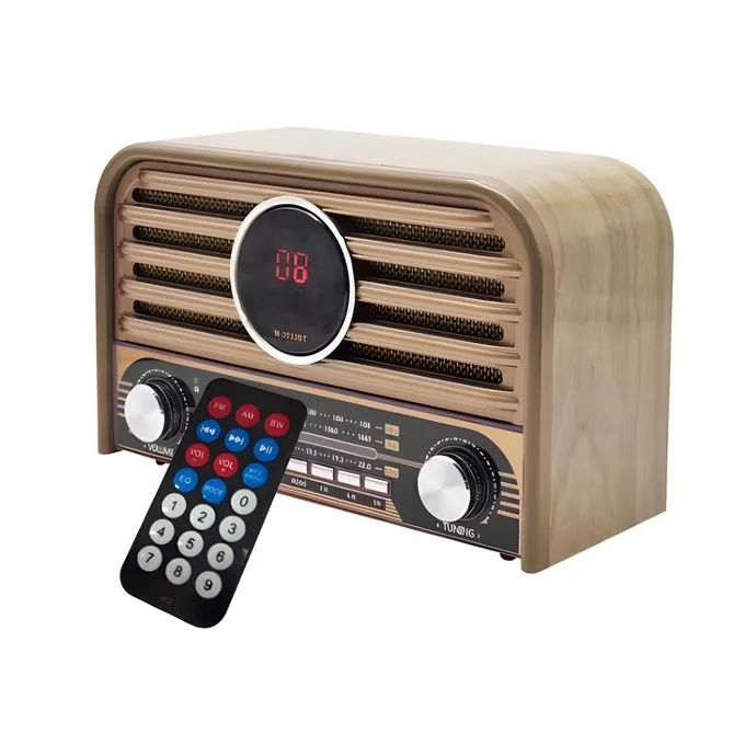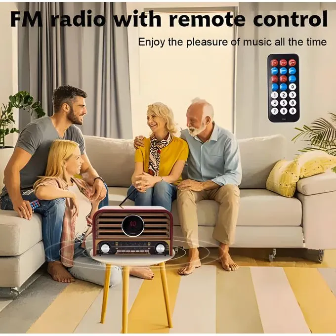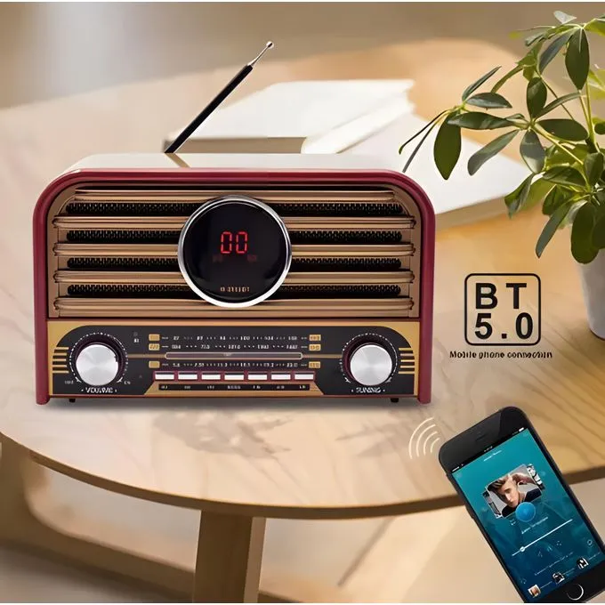 يتميز الراديو بتصميم خشبي كلاسيكي يجمع بين الأصالة والتكنولوجيا الحديثة. يدعم وظائف متعددة بما في ذلك البلوتوث، ومنفذ USB، وبطاقة SD، ومدخل AUX. يتضمن راديو متعدد النطاقات (FM، AM، SW). يمكن التحكم فيه عن بعد باستخدام جهاز التحكم المرفق.