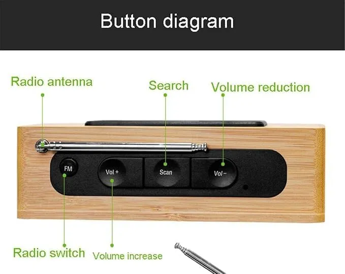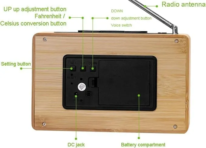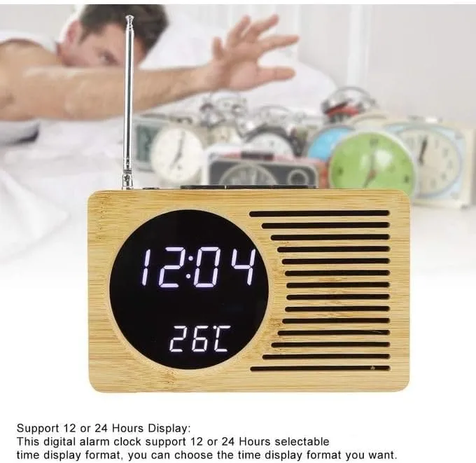 أضف لمسةً مميزةً إلى ديكور منزلك مع راديو الساعة الخشبي الفاخر بتصميمه متعدد الوظائف الذي يجمع بين الأناقة والعملية. يتميز هذا الراديو الخشبي الرائع بشاشة رقمية مع شاشة كبيرة عالية الدقة توفر إضاءة واضحة وناعمة، مثالية للمشاهدة الليلية. مع إمكانية عرض السنة والشهر واليوم والوقت ودرجة الحرارة، يمكنك متابعة التاريخ ودرجة الحرارة الحاليين.