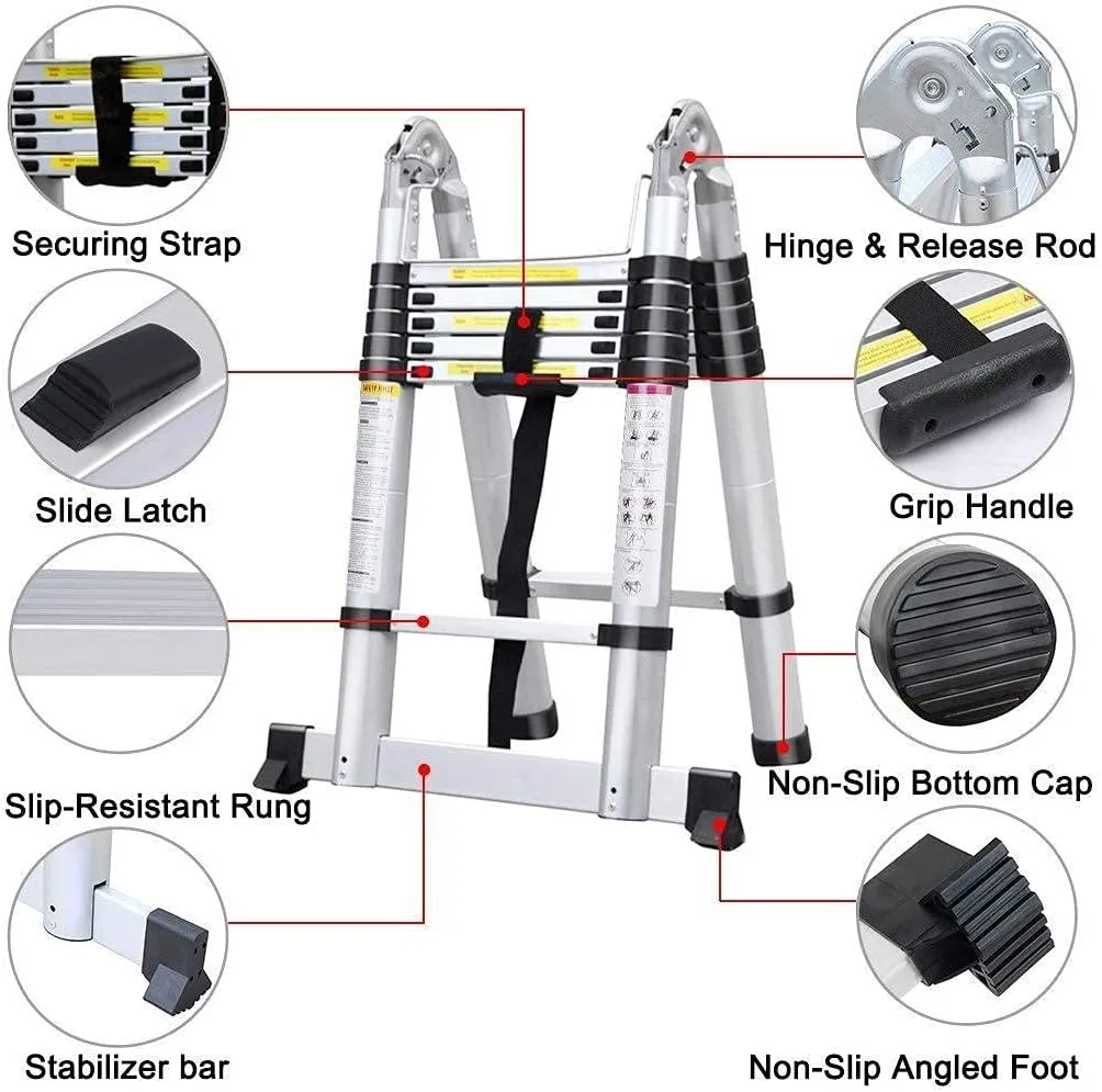 سلم تلسكوبي عالي الجودة مصنوع من سبائك الألومنيوم المتينة،
