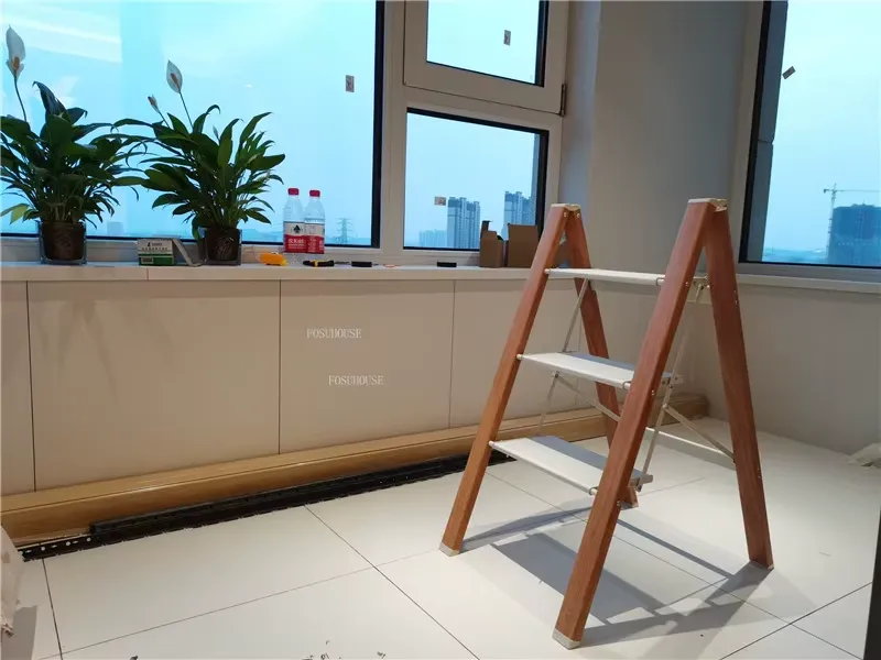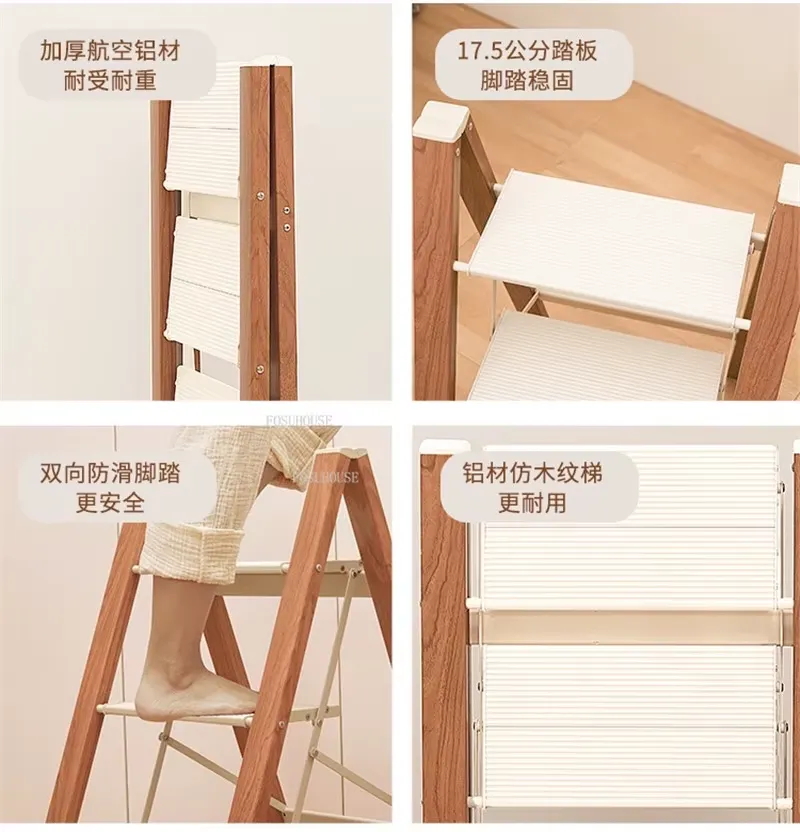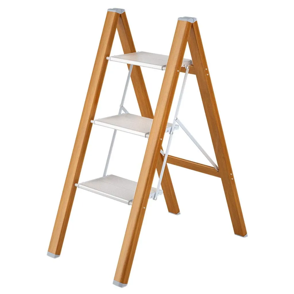 سلم خطوات منزلي مصنوع من مزيج الخشب الملون وسبائك الألومنيوم، يتميز بتصميم قوي وآمن مع درجات مضادة للانزلاق. يمكن استخدامه كسلم للوصول للأرفف العالية، أو ككرسي جلوس، أو كقطعة ديكور داخل المنزل. آمن للاستخدام اليومي، قابل للطي لتوفير المساحة، وسهل التخزين والحمل. مثالي للمطبخ، غرفة الملابس، الحمام، أو المكتب المنزلي.