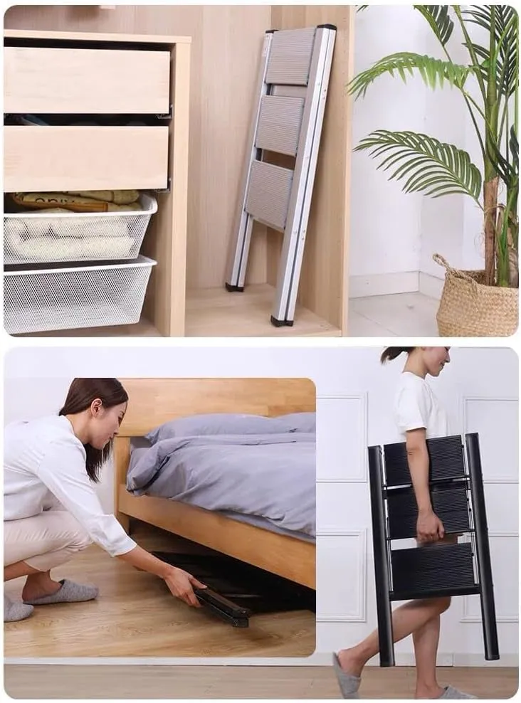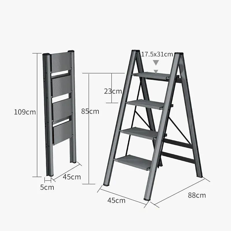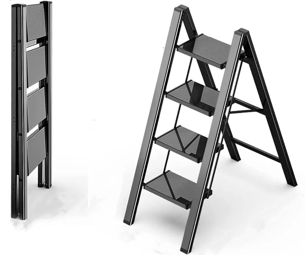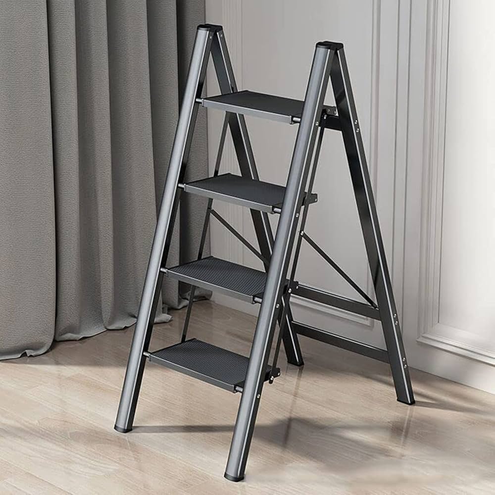 سلم ألومنيوم قابل للطي مع دواسات مضادة للانزلاق، يتميز بخفة الوزن والمتانة وقابلية التخزين في مساحة صغيرة، يتحمل وزن حتى 136 كجم.