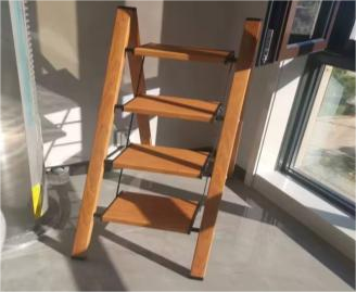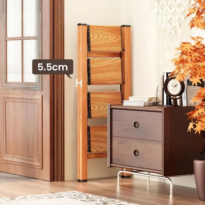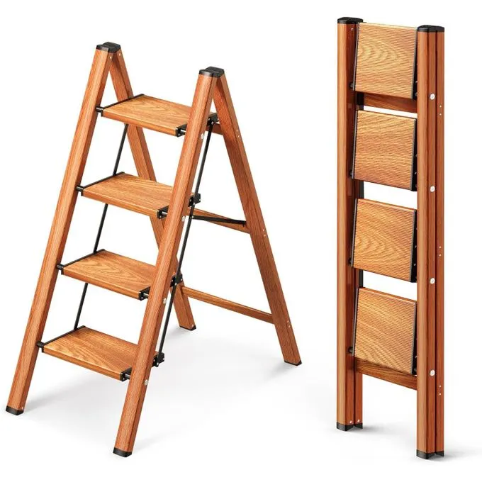 سلم 4 خطوات مصنوع من الألومنيوم المتين مع عناصر خشبية أنيقة، يتميز بخفة وزنه وسهولة نقله وطيه عند عدم الاستخدام. الدرجات واسعة ومضادة للانزلاق لضمان الثبات والأمان أثناء الصعود والنزول. مثالي للوصول للأرفف العالية في المطبخ، وتعليق الستائر، وأعمال الإصلاحات المنزلية، والاستخدام الاحترافي الخفيف. تصميمه المدمج يجعل تخزينه داخل الخزانة أو خلف الأبواب أمرًا سهلاً. مناسب للمنزل، المكتب، المحلات التجارية، والفنادق.