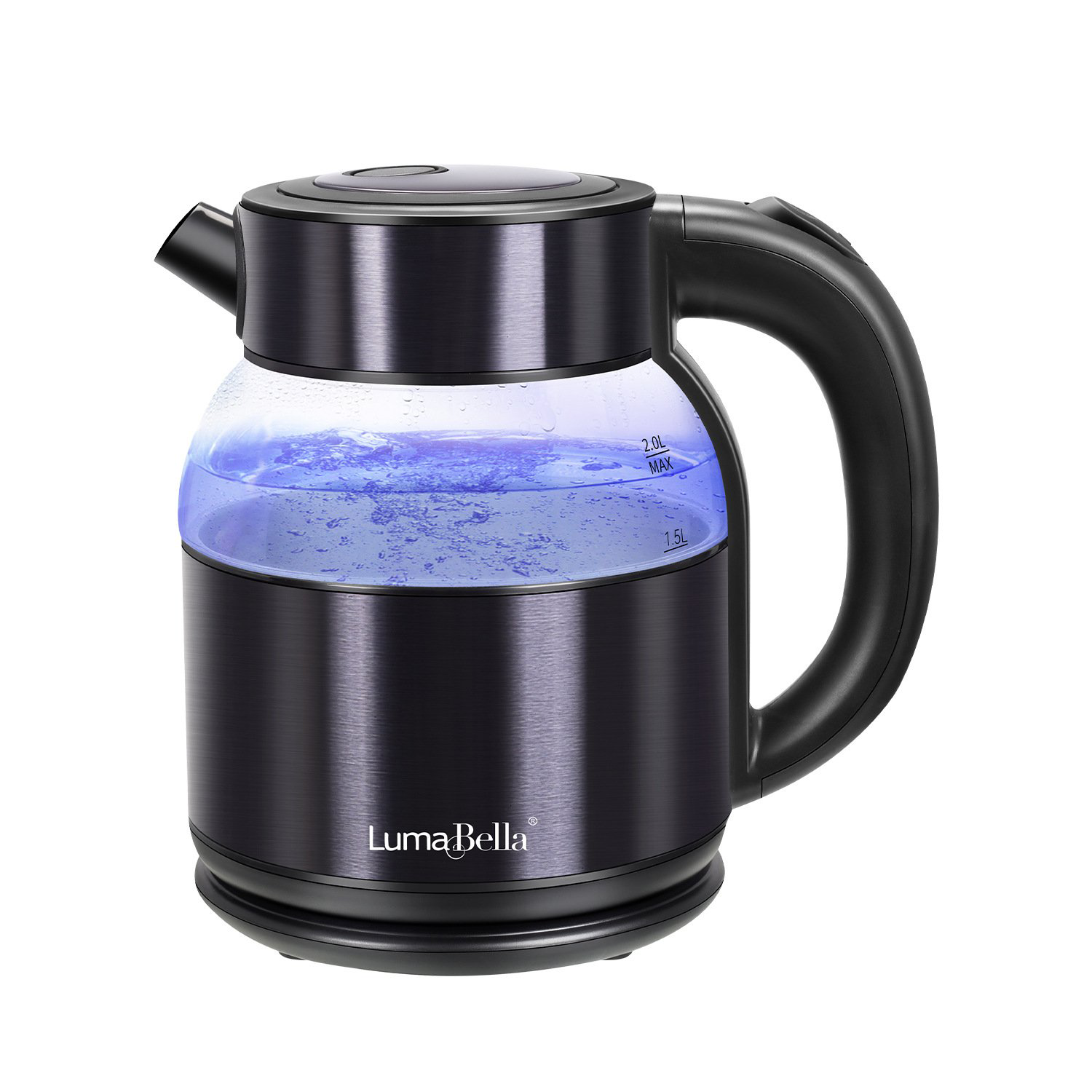 غلاية ماء عصرية بسعة 2 لتر، مثالية للاستخدام المنزلي والمكتبي. تتميز بهيكل من الزجاج المقاوم للحرارة واللون الأسود الفاخر، مع إضاءة LED زرقاء داخلية أثناء التشغيل. قاعدة دوران 360 درجة وغليان سريع.