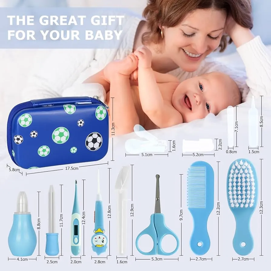 طقم العناية ١٢ قطعه ١- فرشة ٢- مشط ٣-مقص ٤- ثيرموميتر ديجيتال ٥-فرشة لثة ٦- مبرد اظافر ٧- قصافة اظافر ٨- شفاط انف ٩- تتينة ١٠- سلسلة تيتينه مشبك ١١- قطارة ١٢- ملقاط للاذن