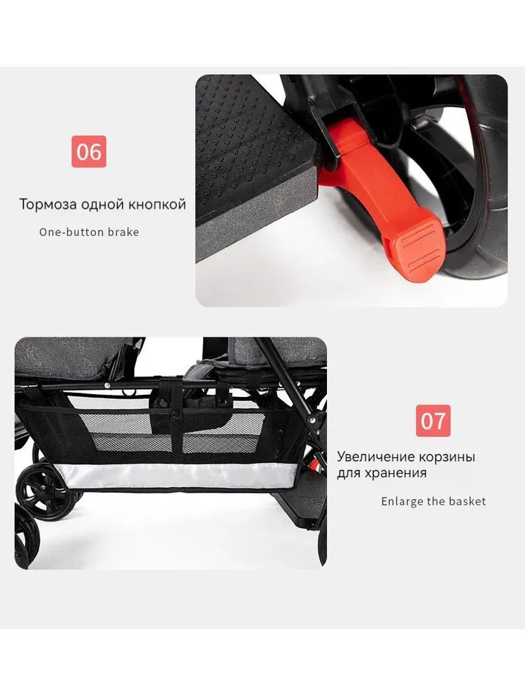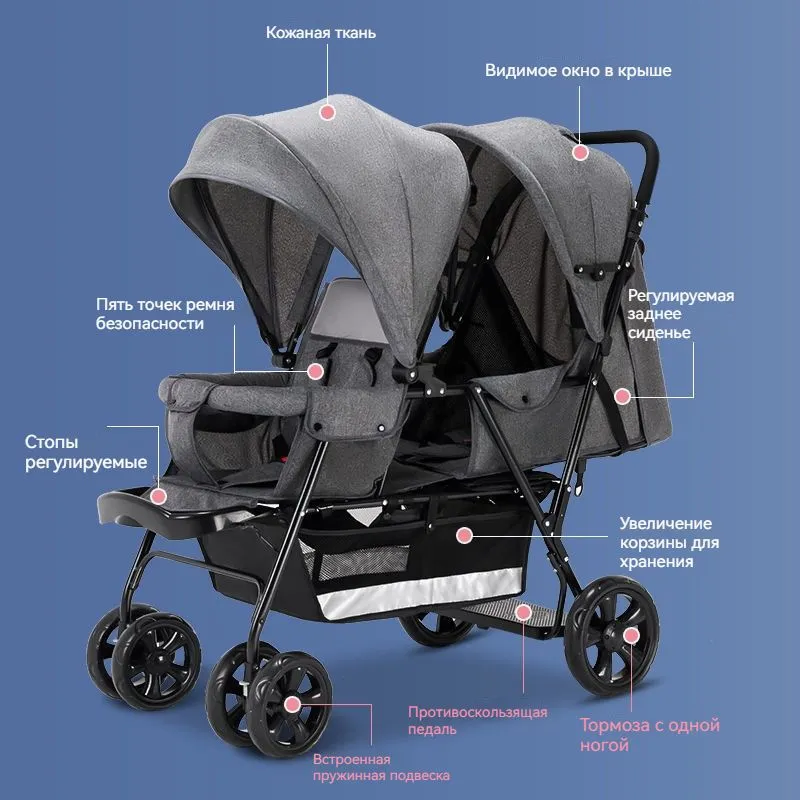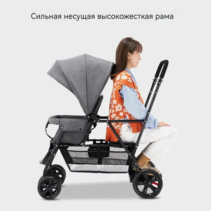 عربة أطفال مزدوجة مخصصة للتوأم أو لطفلين بأعمار متقاربة، توفر راحة تامة أثناء الخروج والتنقل.تأتي بهيكل قوي ومتين مع نظام آمن للتثبيت، ومقاعد مريحة، بالإضافة إلى مساحة تخزين مناسبة للأغراض الخاصة بالأطفال.تم تصميمها لتضمن سهولة الطي والتنقل، مما يجعلها مناسبة للرحلات اليومية والتسوق والحدائق.