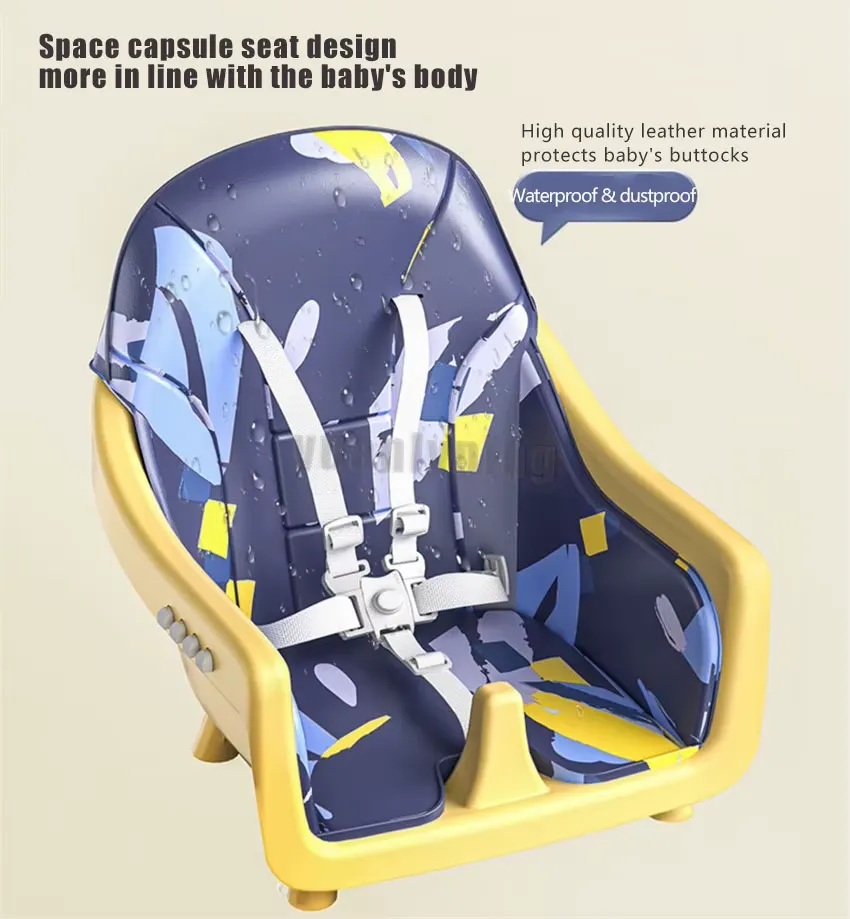 كرسي طعام آمن ومريح للأطفال، قابل للتعديل والطي، مناسب للاستخدام اليومي في المنزل ومع السفر، يوفر ثباتًا وأمانًا للطفل أثناء الأكل.