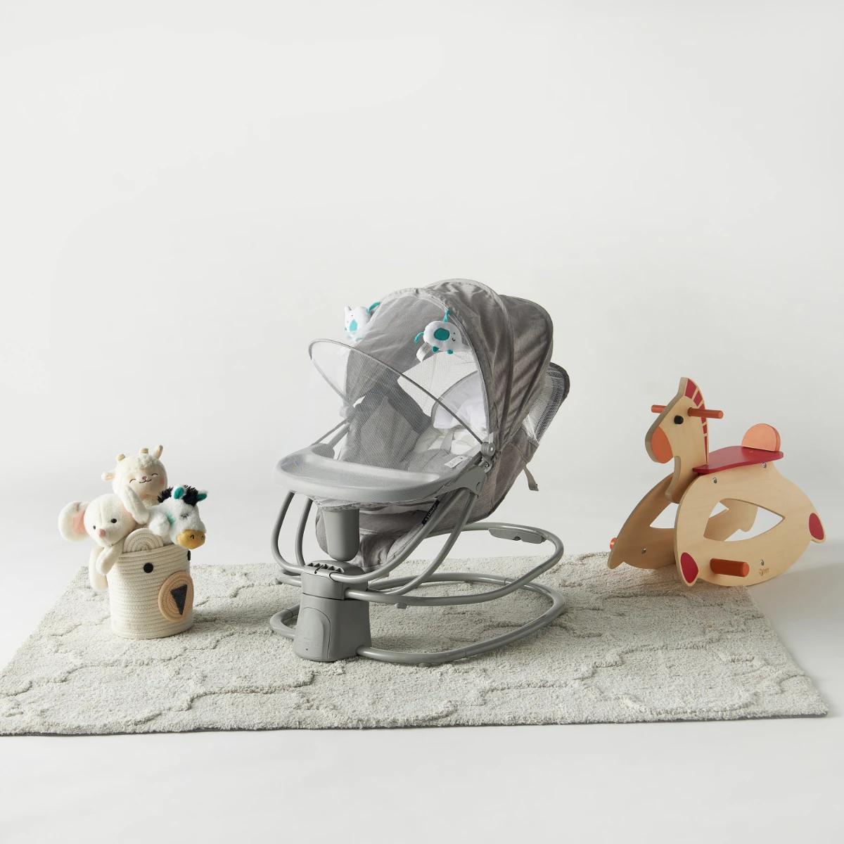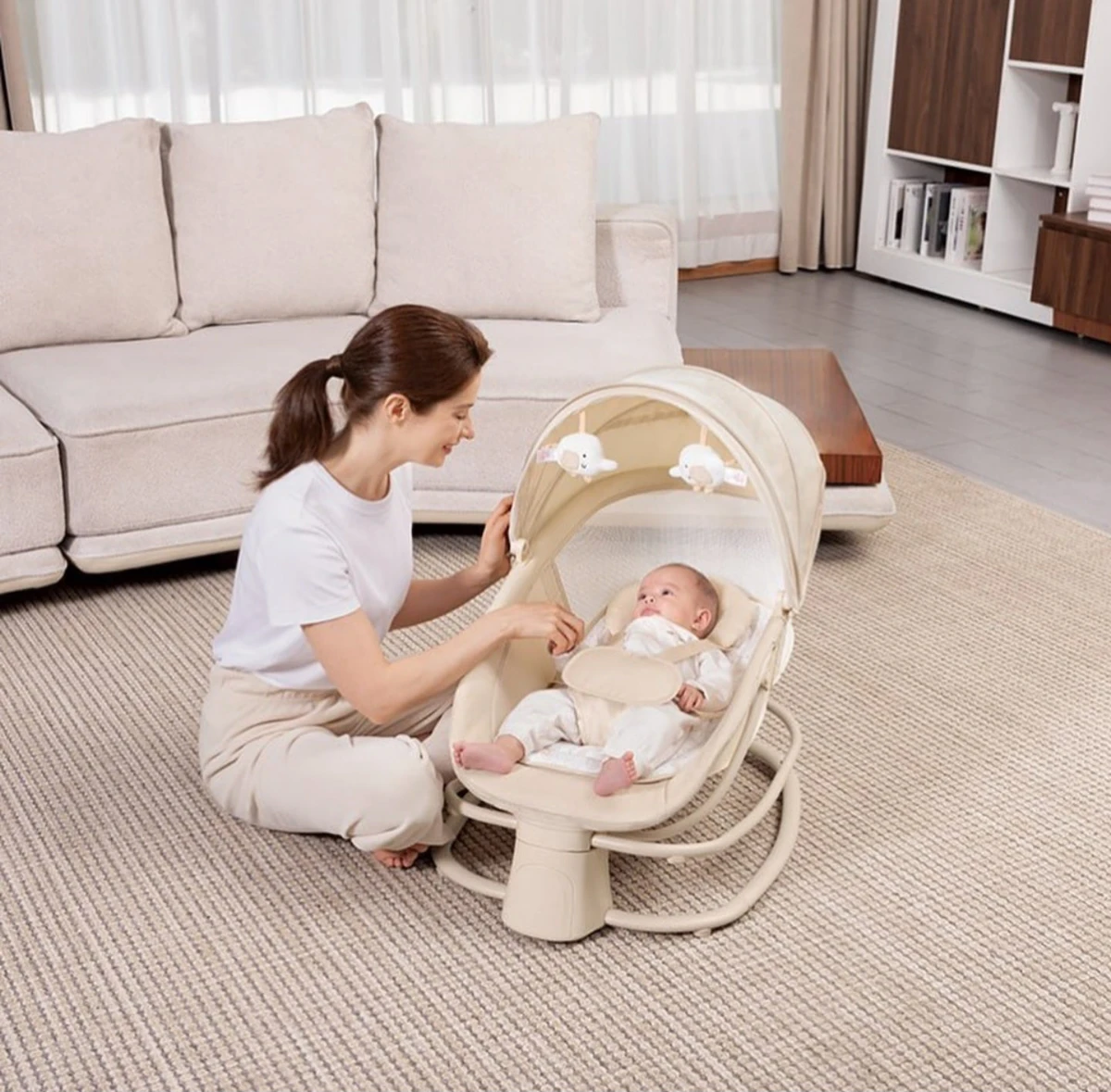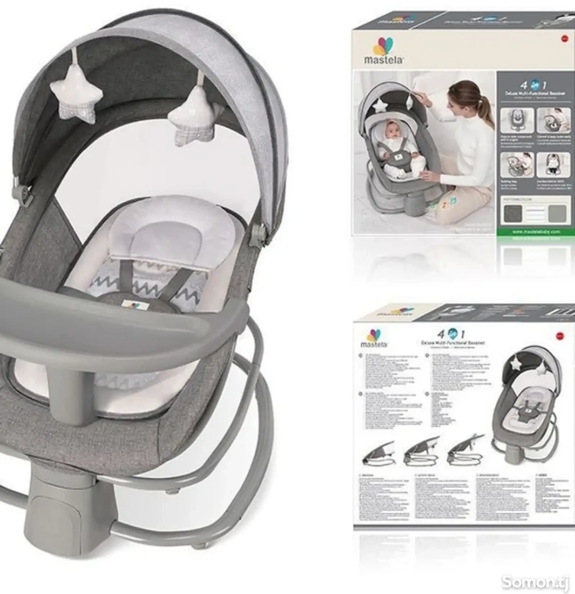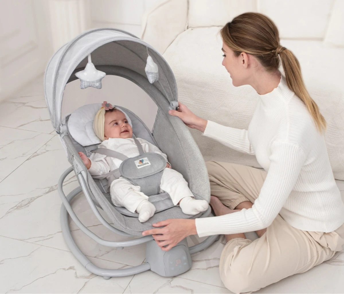 كرسي Mastela 4 في 1 يجمع بين الهز، النوم، الإطعام، واللعب في منتج واحد. تصميم متعدد الاستخدامات يوفر الراحة والعملية لكل أم وطفل.