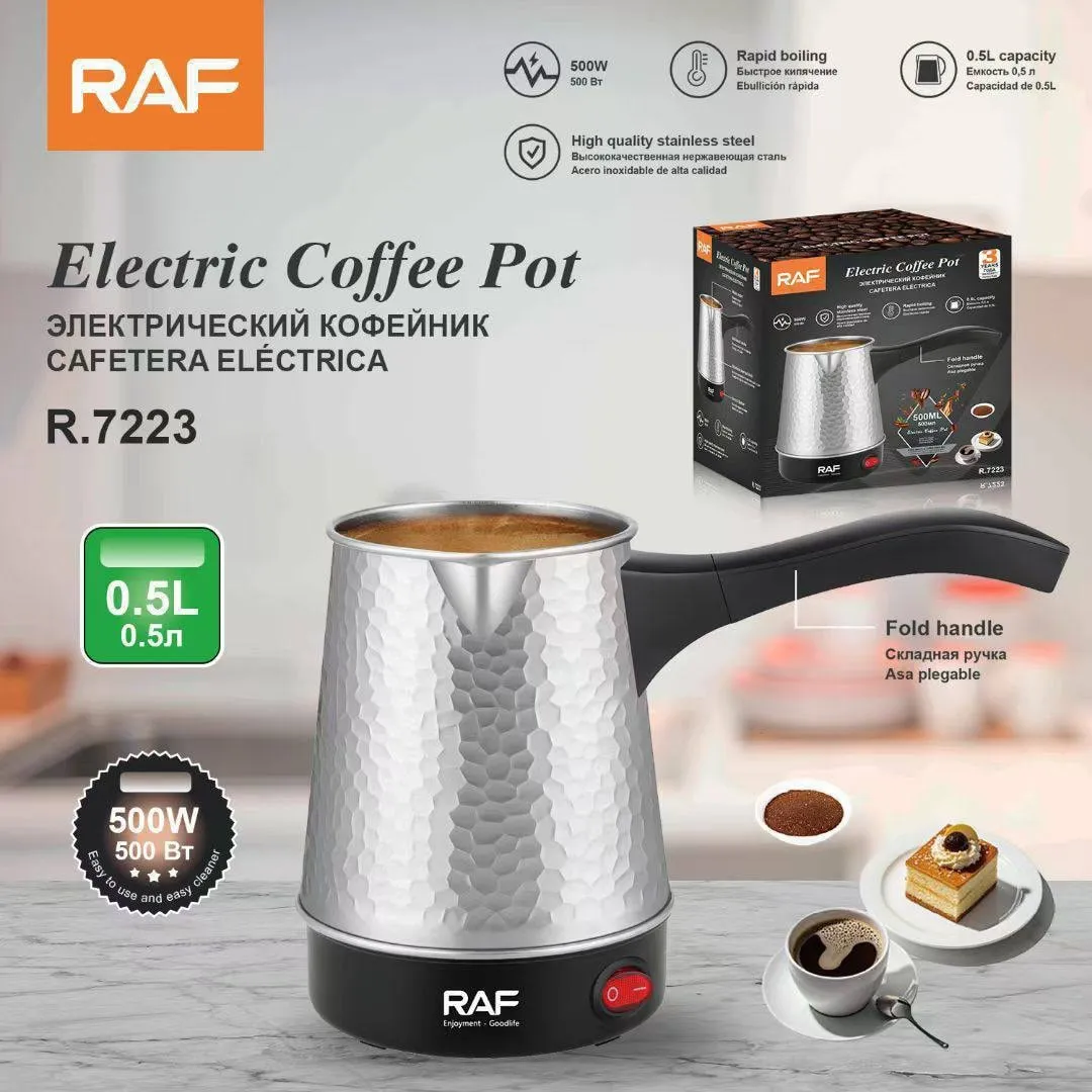 استمتع بالقهوة التركية واليونانية الأصيلة مع ماكينة القهوة الكهربائية RAF R.7223 ، التي تتميز بسعة 700 مل وتصميم محمول من الفولاذ المقاوم للصدأ .يجمع إبريق القهوة هذا بين الأناقة والمتانة، مما يجعله مثاليًا للاستخدام في المنزل أو المكتب أو السفر .