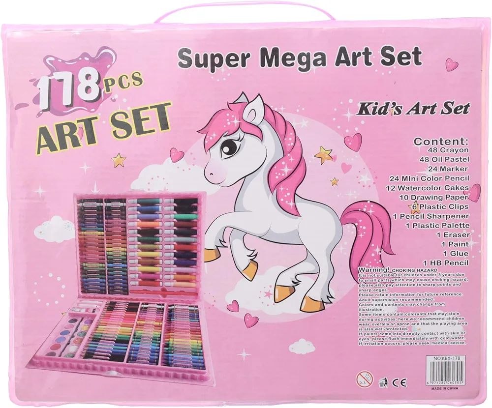 مجموعة هوميكوزي الفنية هي الهدية المثالية لتنمية المهارات الفنية لطفلك. تحتوي على مجموعة شاملة من أدوات الرسم والتلوين عالية الجودة: أقلام تلوين شمعية، أقلام تلوين خشبية، أقلام تحديد (ماركر) بألوان زاهية، كعكات مائية (ألوان مائية)، دفتر رسم لتدوين الإبداعات، وقوالب (استنسل) للمساعدة في رسم الأشكال المعقدة بسهولة. هذه المجموعة متكاملة وتشجع الأطفال من سن 4 إلى 10 سنوات على استكشاف فنون الرسم والتلوين والحرف اليدوية. إنها تعزز الإبداع والتنسيق بين اليد والعين، وتوفر ساعات من المرح التعليمي. مناسبة كـ هدية رائعة للبنات والأولاد.