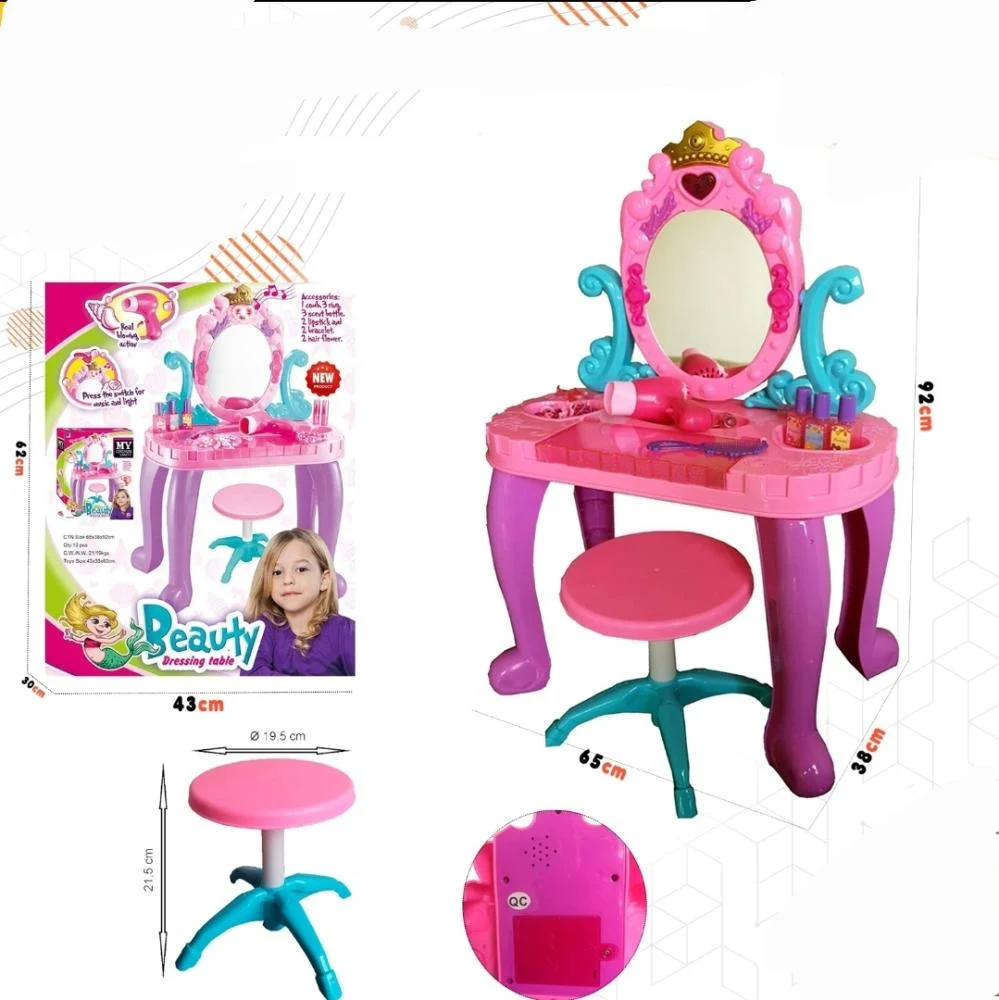 اجعلي وقت اللعب أكثر متعة مع مجموعة مكياج 2 في 1 للبنات التي تضم طاولة زينة أنيقة وكرسي مريح. تحتوي على أدوات تجميل آمنة وألوان مبهجة تساعد الطفلة على تنمية خيالها والتعبير عن شخصيتها بطريقة آمنة ومسلية. مثالية كهدية رائعة للبنات الصغيرات.