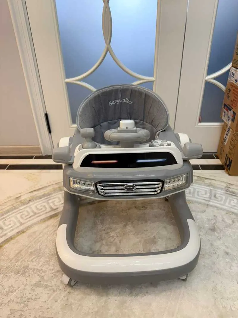 التصميم: تتميز بتصميم مبتكر على شكل سيارة مع أضواء وموسيقى لإبقاء الطفل مستمتعًا. الوظائف: غالبًا ما تكون متعددة الوظائف، حيث يمكن استخدامها كمشاية، ومركز أنشطة، وعربة ركوب (4 في 1). تعديل الارتفاع: تحتوي على مستويات ارتفاع قابلة للتعديل لتناسب مراحل نمو الطفل المختلفة. السلامة والراحة: مصممة بقاعدة واسعة وهيكل مثلثي وعجلات مغطاة بالمطاط وكتل مضادة للانزلاق لضمان الأمان والثبات. المقعد مبطن وقابل للإزالة والغسل. التطوير: تساعد على تقوية عضلات الساق وتحسين التوازن وتشجع على اللعب التخيلي.
