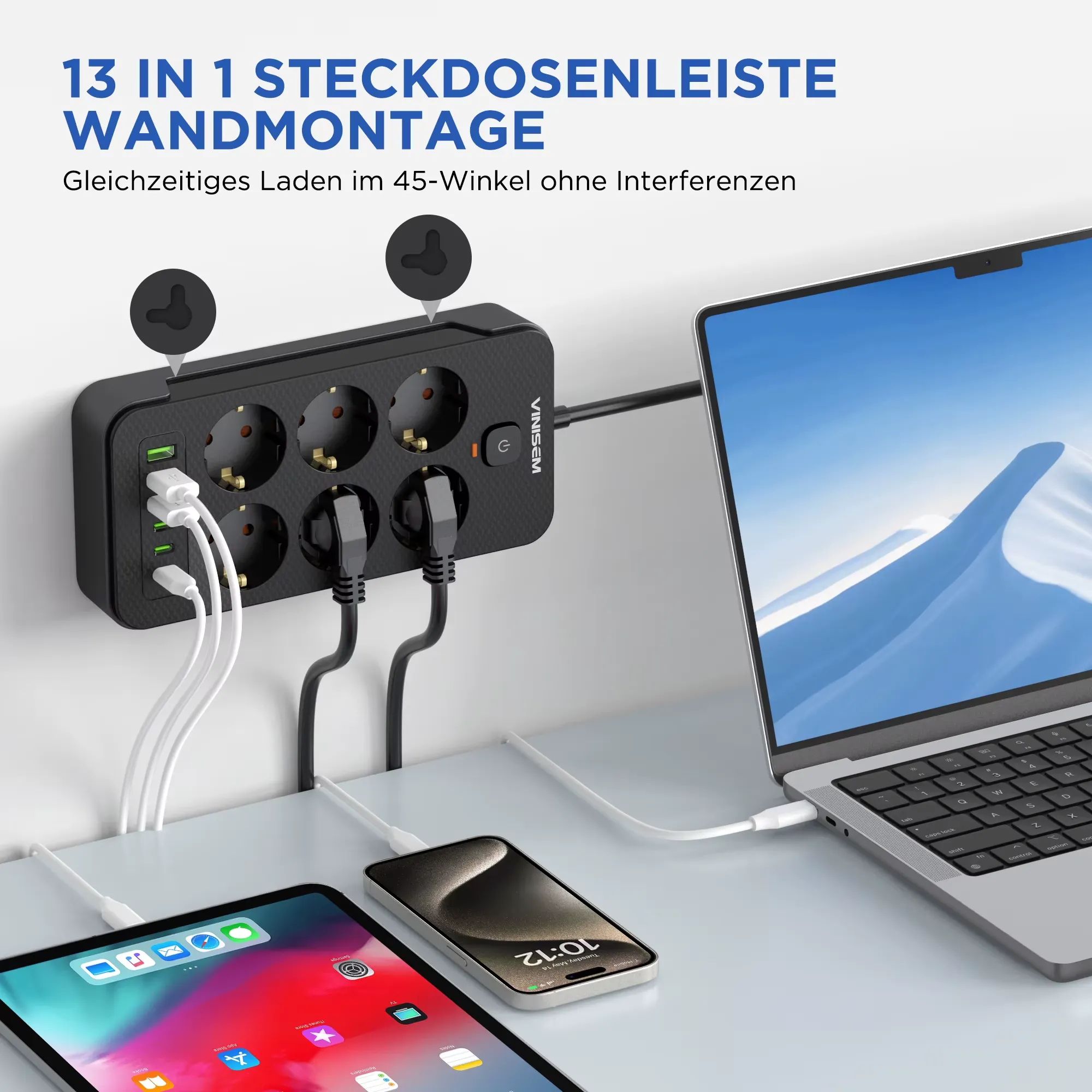 مشترك طاقة يتميز بتصميم متين ومضاد للسخونة، يحتوي على 6 فتحات كهربائية قياسية لتوصيل الأجهزة المنزلية والإلكترونية، بالإضافة إلى 3 منافذ USB و3 منافذ Type-C لشحن الهواتف والتابلت وأجهزة اللابتوب الحديثة بسرعة وأمان. مزود بأنظمة حماية متقدمة ضد الحمل الزائد، وحماية الأطفال، وإدارة ذكية للطاقة، مما يجعل استخدامه آمنًا وموثوقًا سواء في المنزل أو المكتب. تصميمه العملي يجعله مثاليًا لتنظيم الأسلاك وتقليل الفوضى