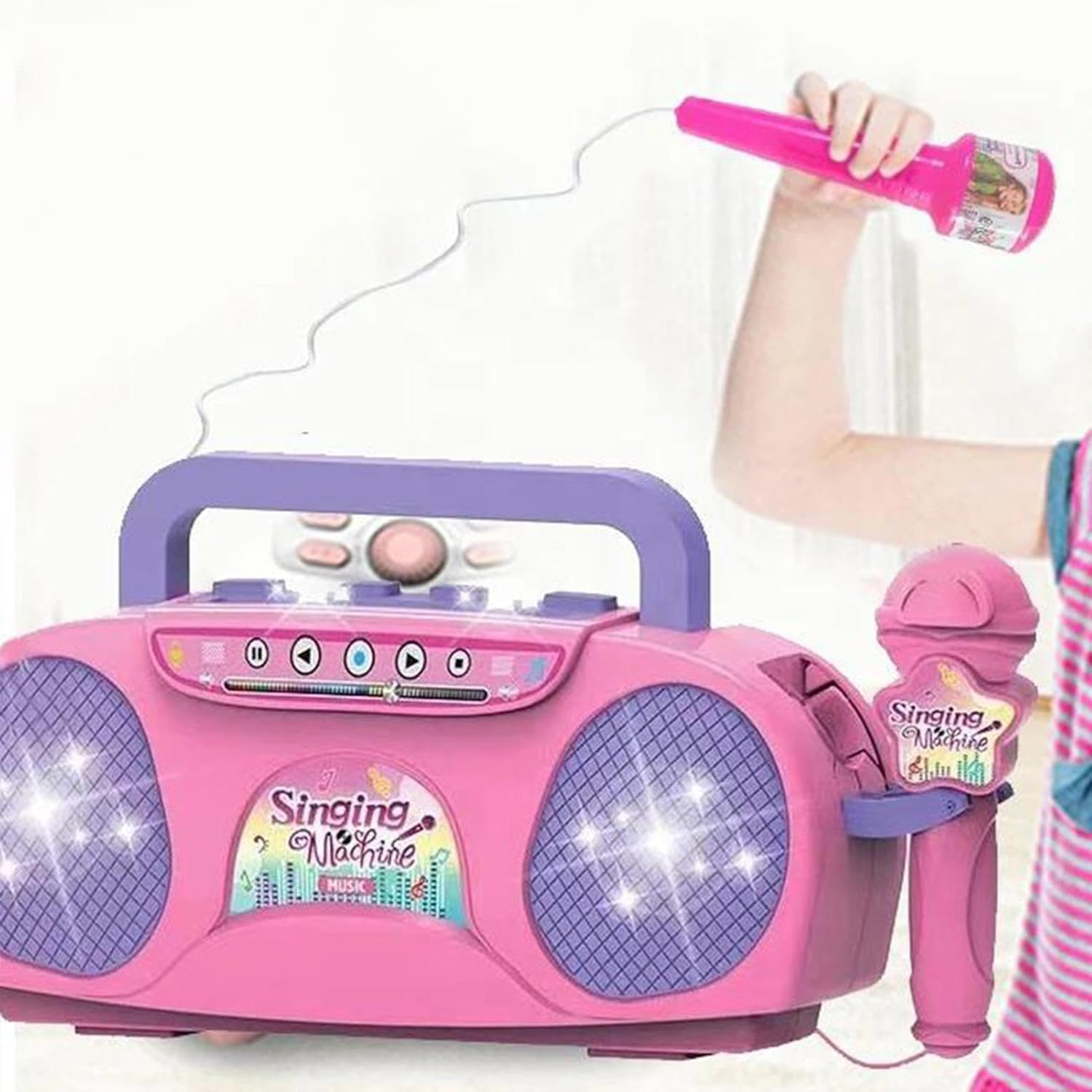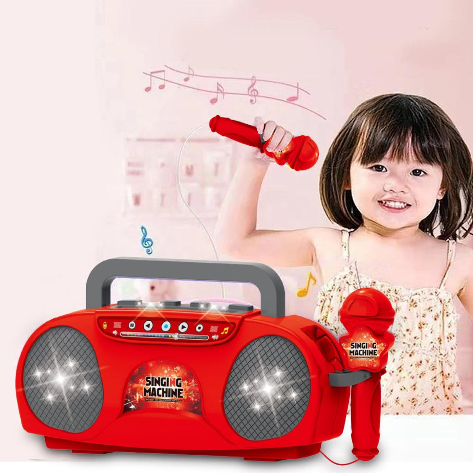 آلة كاريوكي تتيح للأطفال تجربة الغناء بطريقة ترفيهية وتعليمية.