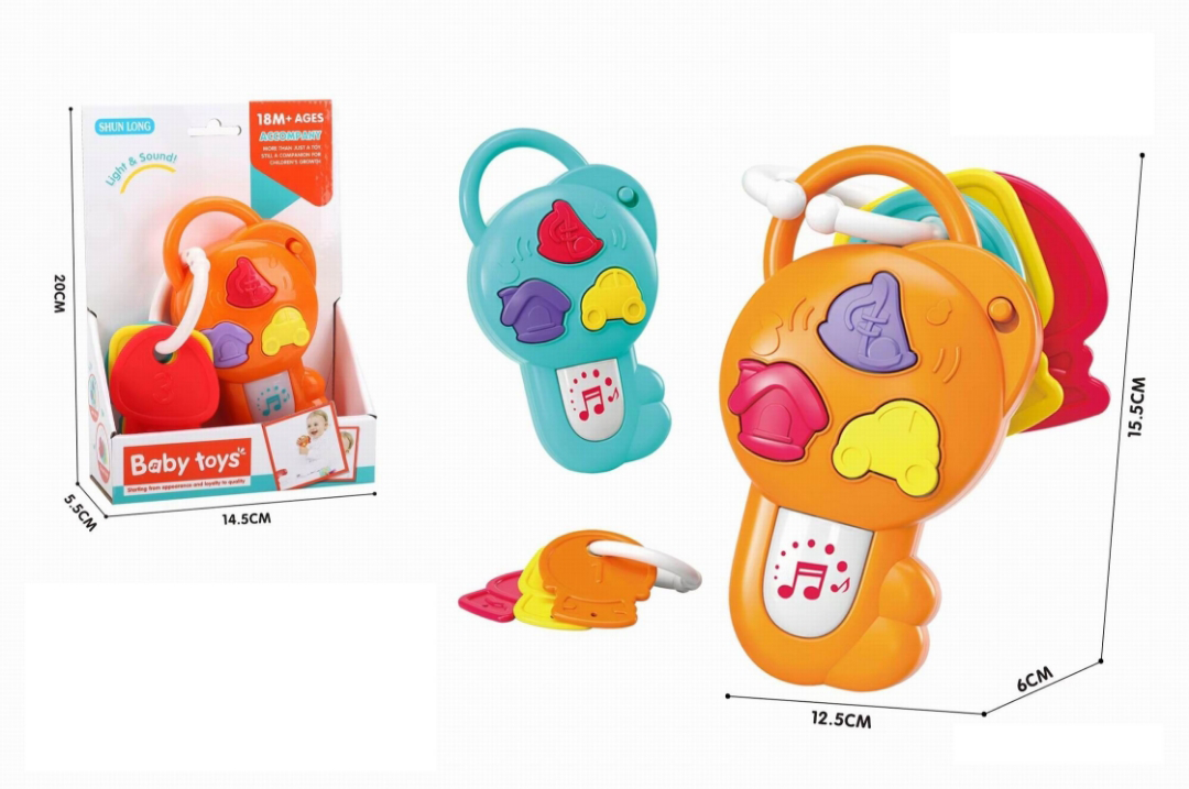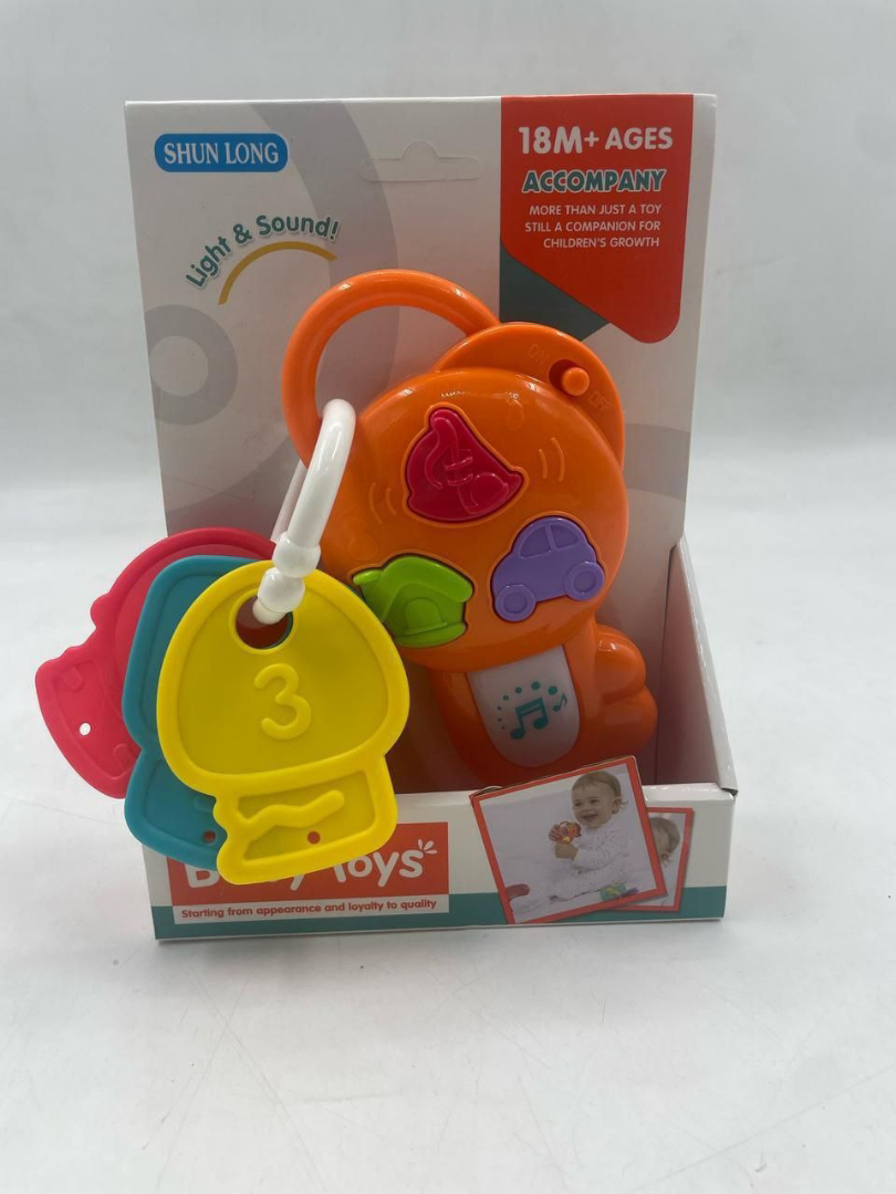 لعبه مفتاح موسيقي للأطفال استمتعي بمشاهدة طفلك يكتشف الأصوات والألوان مع لعبة مفاتيح البيبي المضيئة بالأصوات. تصميم آمن وسهل الإمساك لليد الصغيرة، يصدر أصواتًا مرحة لتحفيز السمع والبصر، ويشجع على تنمية المهارات الحركية الدقيقة بطريقة ممتعة وآمنة.